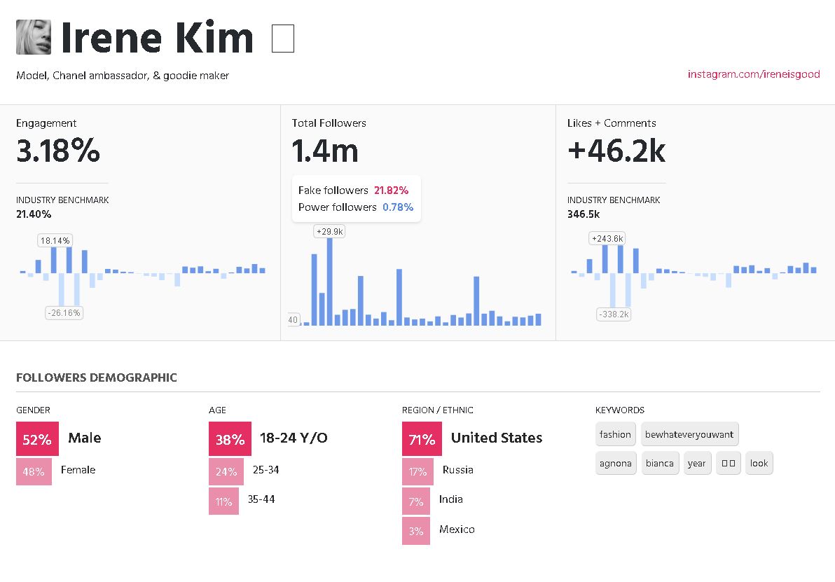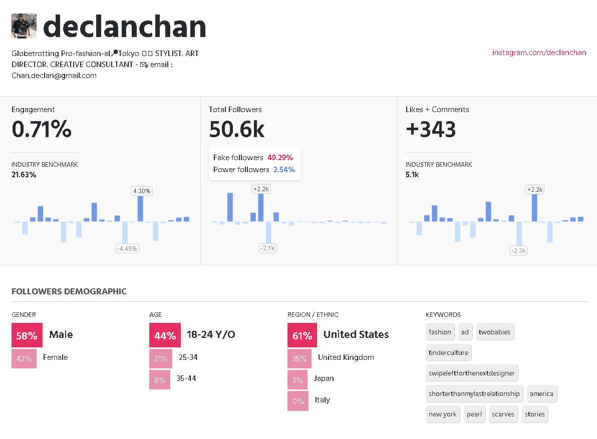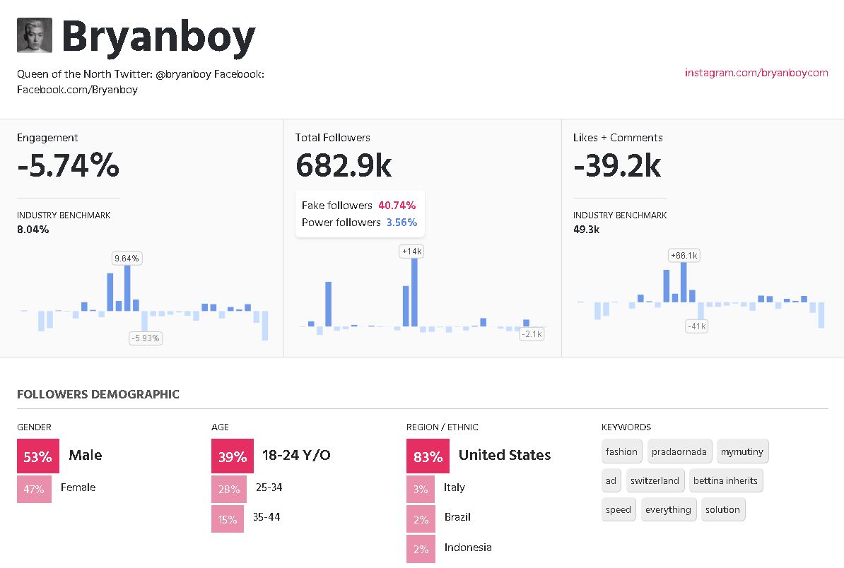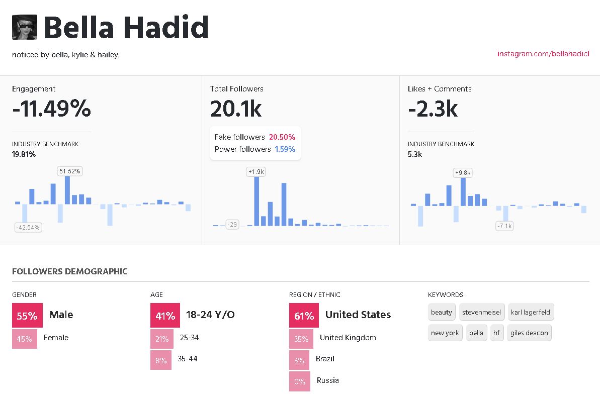 網站所列出的 Fake Followers 其實只是一個數字,純粹根據一條數字方程式所得出結果,並不代表以上用戶的確有用真金白銀買粉絲,只供各位參考。用戶與用戶之間的百分比有所分別,大家亦可從中自行分析因由;舉例說明,不同用戶的讀者性質有所不一,如 @diet_prada 常以惹起公眾話題的時尚個案作為主要內容,愛與追蹤者進行互動,自然粉絲有經常回應留言於帳戶的動態;如果是主要以「擺pose」分享個人衣櫥的時尚網紅,粉絲們對其內容的反應也有所出入,因此會寫上數據之間的差別,也不一定是因為他們有買粉絲的嫌疑。