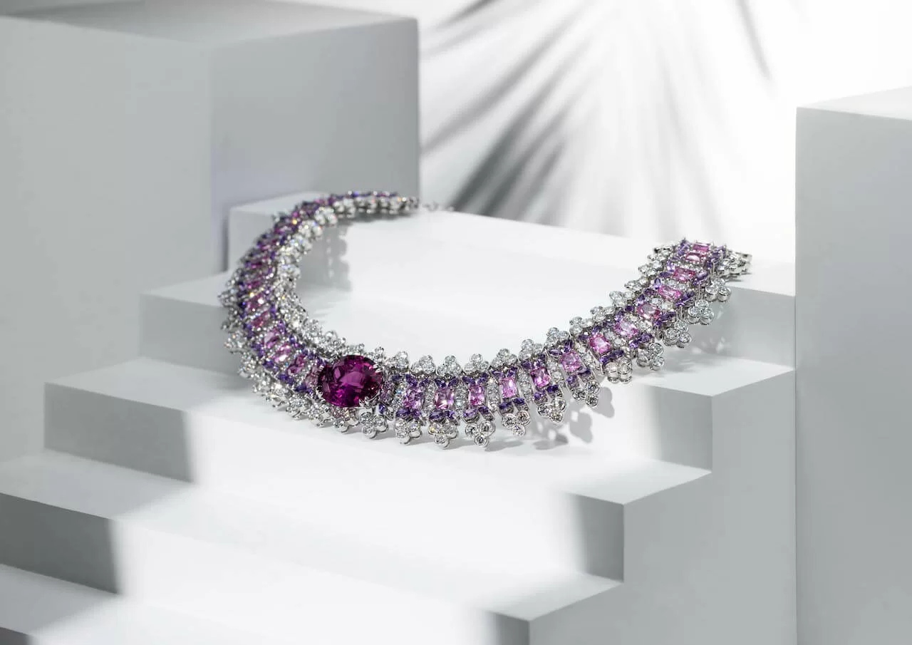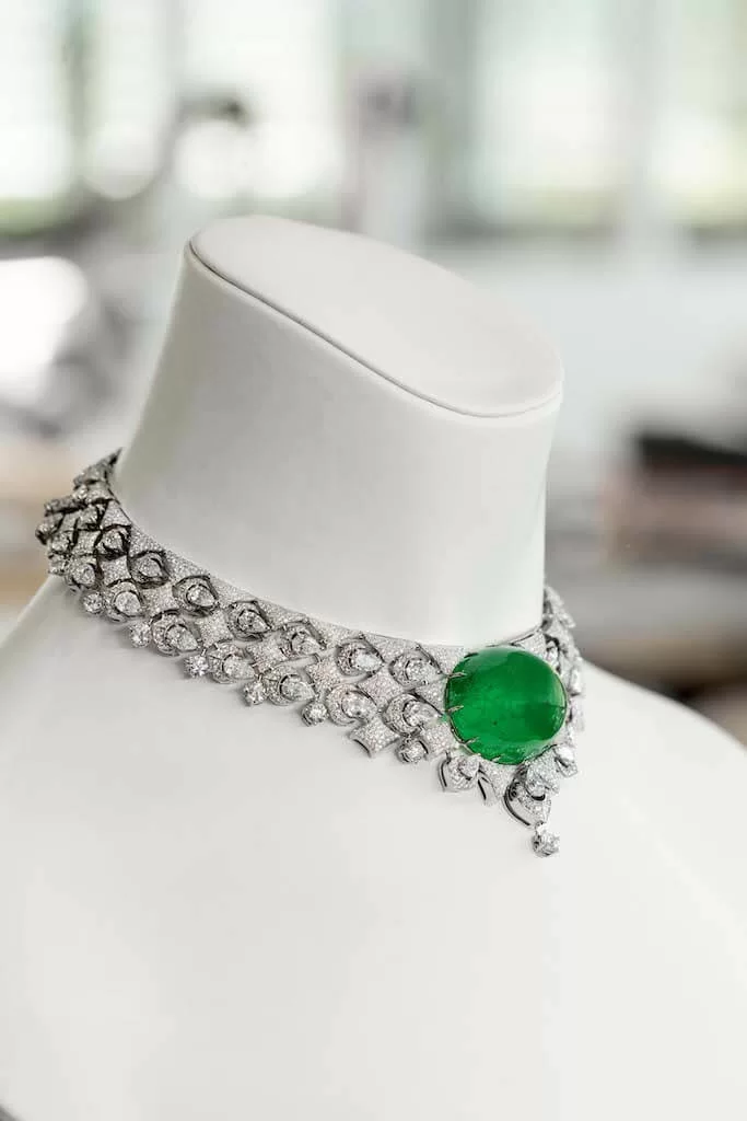 在此先欣賞今年的首款矚目之作,這款華麗的短頸鏈,中央的一顆重達129卡的稀世哥倫比亞蛋面切割祖母綠,鑲嵌於白金與璀璨鑽石製成的頸鏈之上,由巨星佩戴着踏上康城紅地氈。以最純粹的翠綠色澤,在紅毯上見證下一個影史傳奇的誕生。