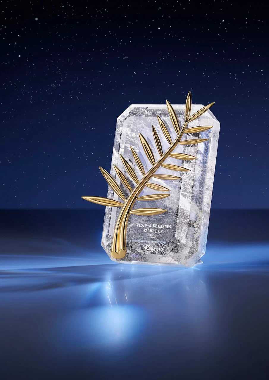 蕭邦聯合總裁兼藝術總監卡羅琳‧舍費爾(Caroline Scheufele)沿用了具代表性的經典棕櫚葉造型,19片以18K黃金鑄造的棕櫚葉鑲嵌在天然水晶底座,葉片模擬被微風輕拂的動態,立體靈動。獎座製作需時70小時,由6位資深工匠精心錘煉,使用多種精密技術和技藝,獎座上的黃金棕櫚葉以「脫蠟鑄造法」鑄成,模具與黃金一併用760°C高溫熔煉,及後蠟製模具融化,黃金棕櫚葉便成型,將棕櫚葉與葉柄的細節精準呈現,再由工匠逐一校正19片棕櫚葉的位置,清理雜質與手工拋光。