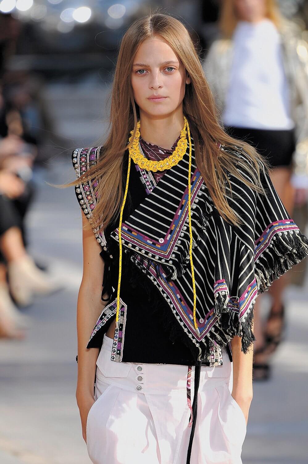 法國品牌Isabel Marant以珠寶飾品系列起家,波米希米亞風格就是品牌的基因,印花、釘珠與刺繡常見於設計系列中。