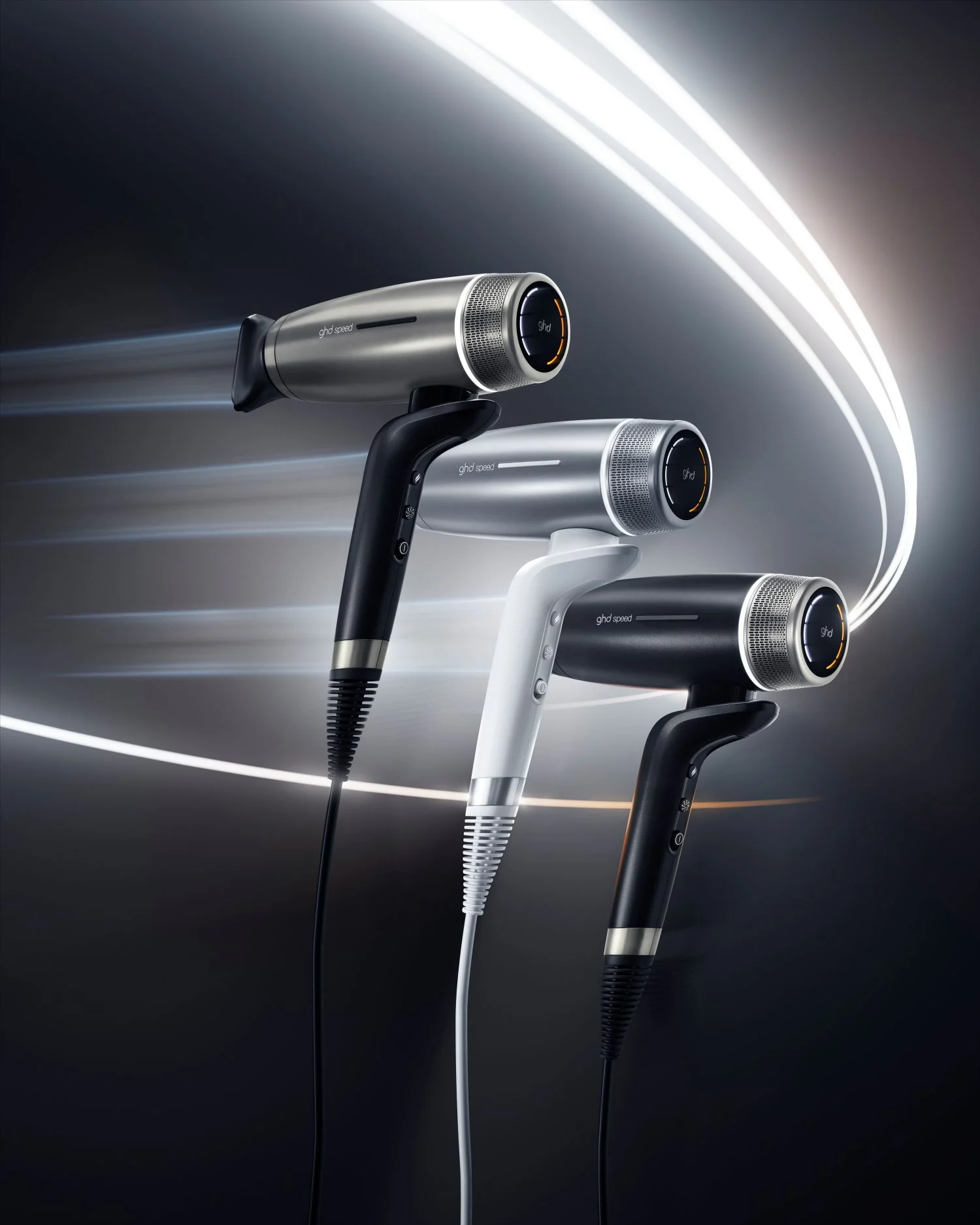 最新 HALO™ 雙重氣流科技比舊版的風力更大和精準,不會過熱並可貼近髮根吹頭,輕鬆造型。有鈦金屬、銀鉑和黑三款顏色。
