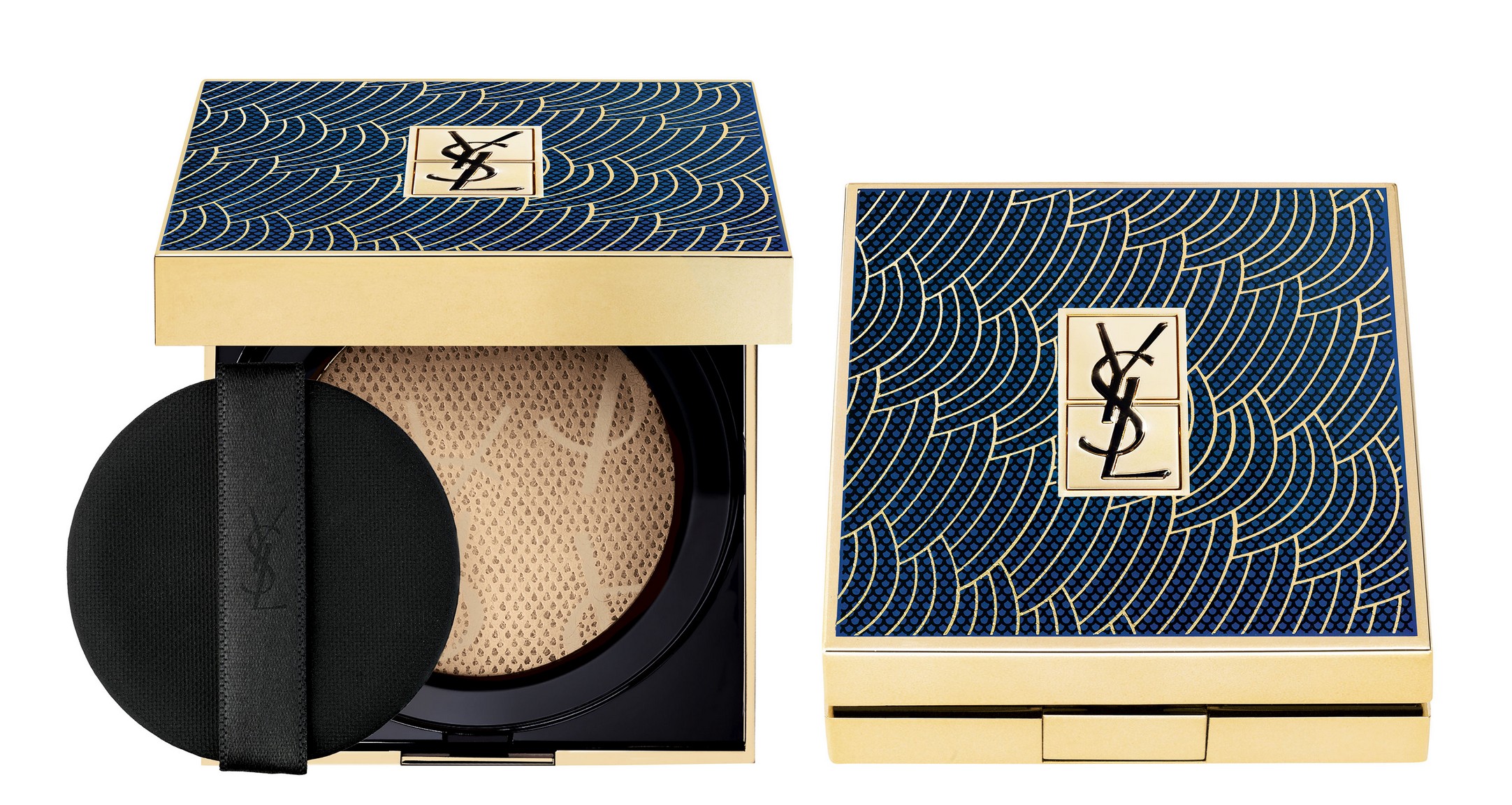 在眾多紅色包裝的彩妝品中,YSL的寶藍色氣墊粉底脫穎而出。以古代帝王服專用的寶藍色為靈感,盒上雕刻著精細的龍鱗,繪以象徵錦鯉的閃金色弧線。兩者交織出和諧色調,寓意幸運和健康。盒身壓印YSL經典「Cassandre」標誌,珍貴非凡,極具收藏價值。