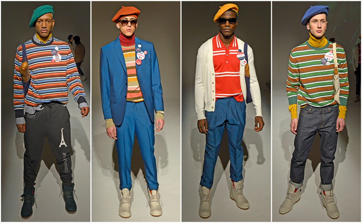 彩色條子的休閒款式配上畫家帽更添時尚感,充滿巴黎人的感覺