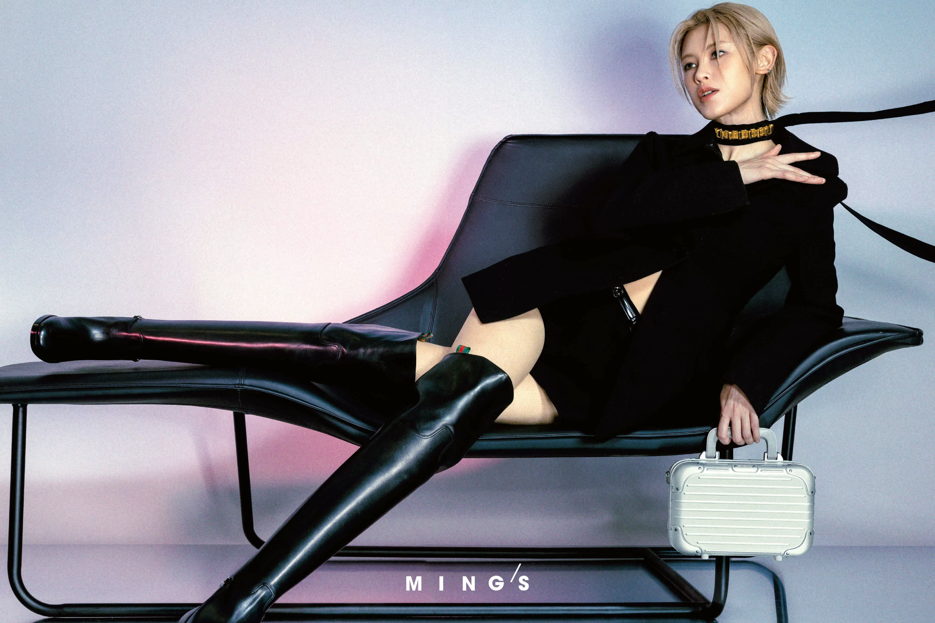 CHOKER, BLAZER, SHORTS & BOOTS GUCCI