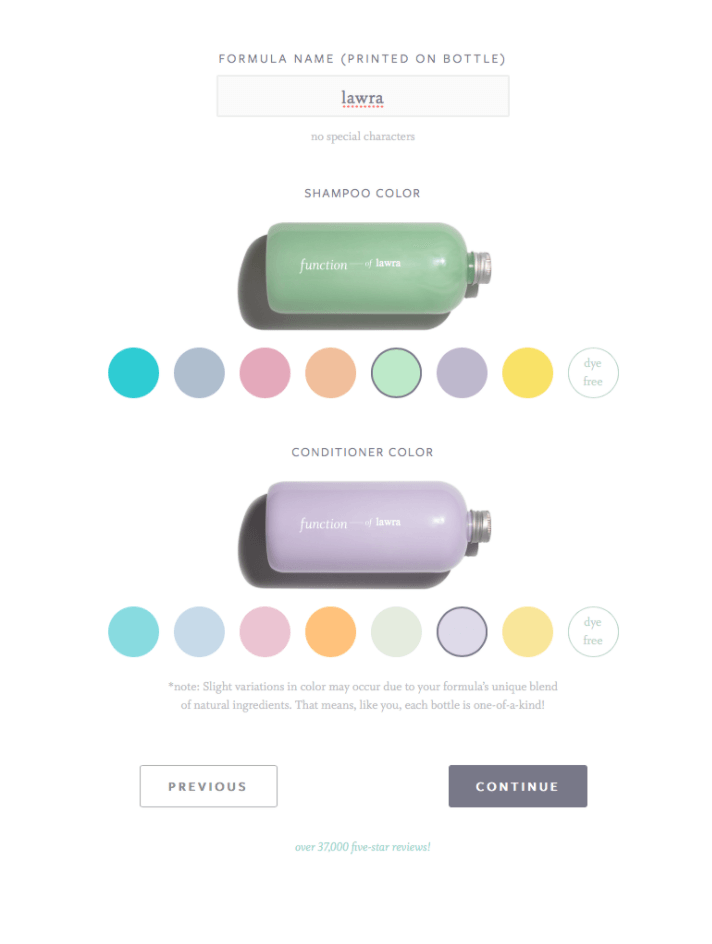 相信大家或會好奇品牌到底能以哪五個步驟,去捕捉客人在頭髮護理上的追求;FUNCTION OF BEAUTY 的網站上會設有一項 HAIR QUIZ,為客人測試並調配心水的護髮組合。 HAIR QUIZ 當中的問題會了解客人的髮質類型,並需選擇個人所追求的護理效果,以及作出香味和顏色偏好的選擇,最後便是選擇產品的容量大小。從這一輪問卷式的查詢之下,或許能給予用家們更大的信心,以及能令訂制化的美容業趨勢更為普及。