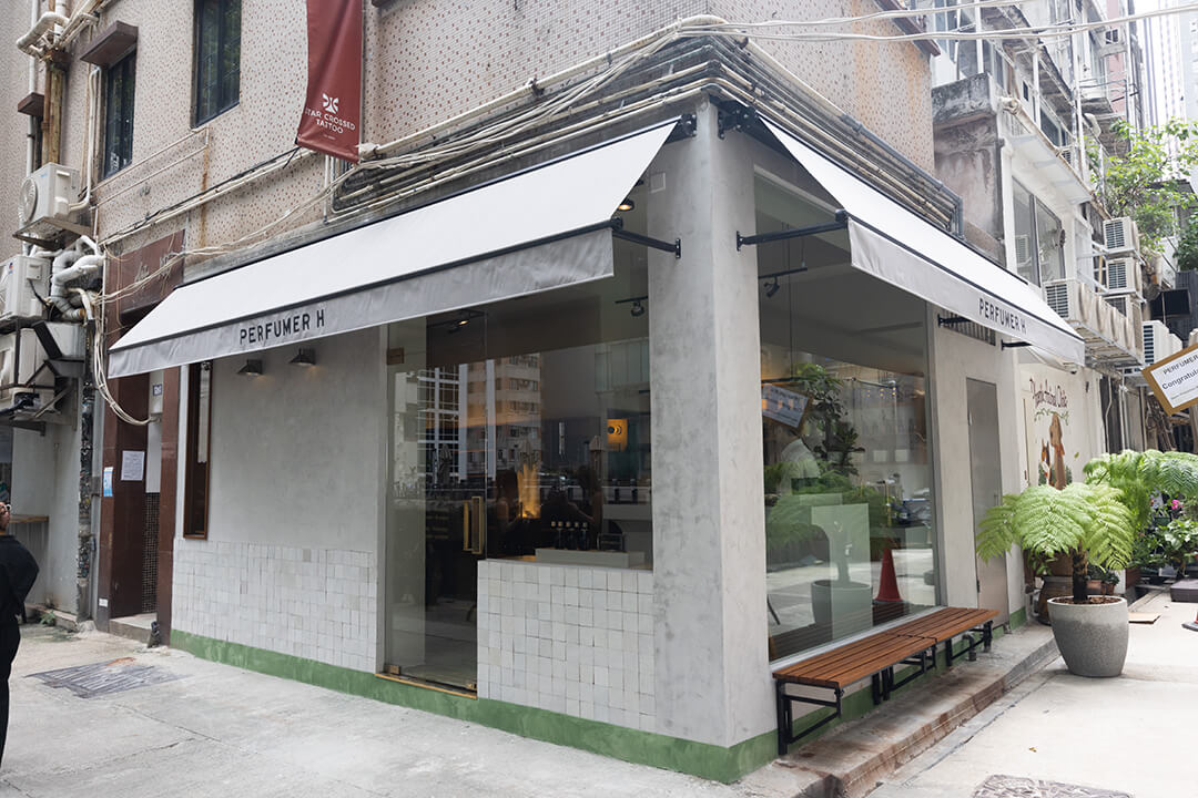 月前首間 PERFUMER H 進駐灣仔日街,店面被大量本地植物和樹木包圍,而店內更有品牌創辦人 LYN HARRIS 挑選的 HENRY WILSON 黃銅壁燈及葉綠色地板,呼應閒靜品香的環境。