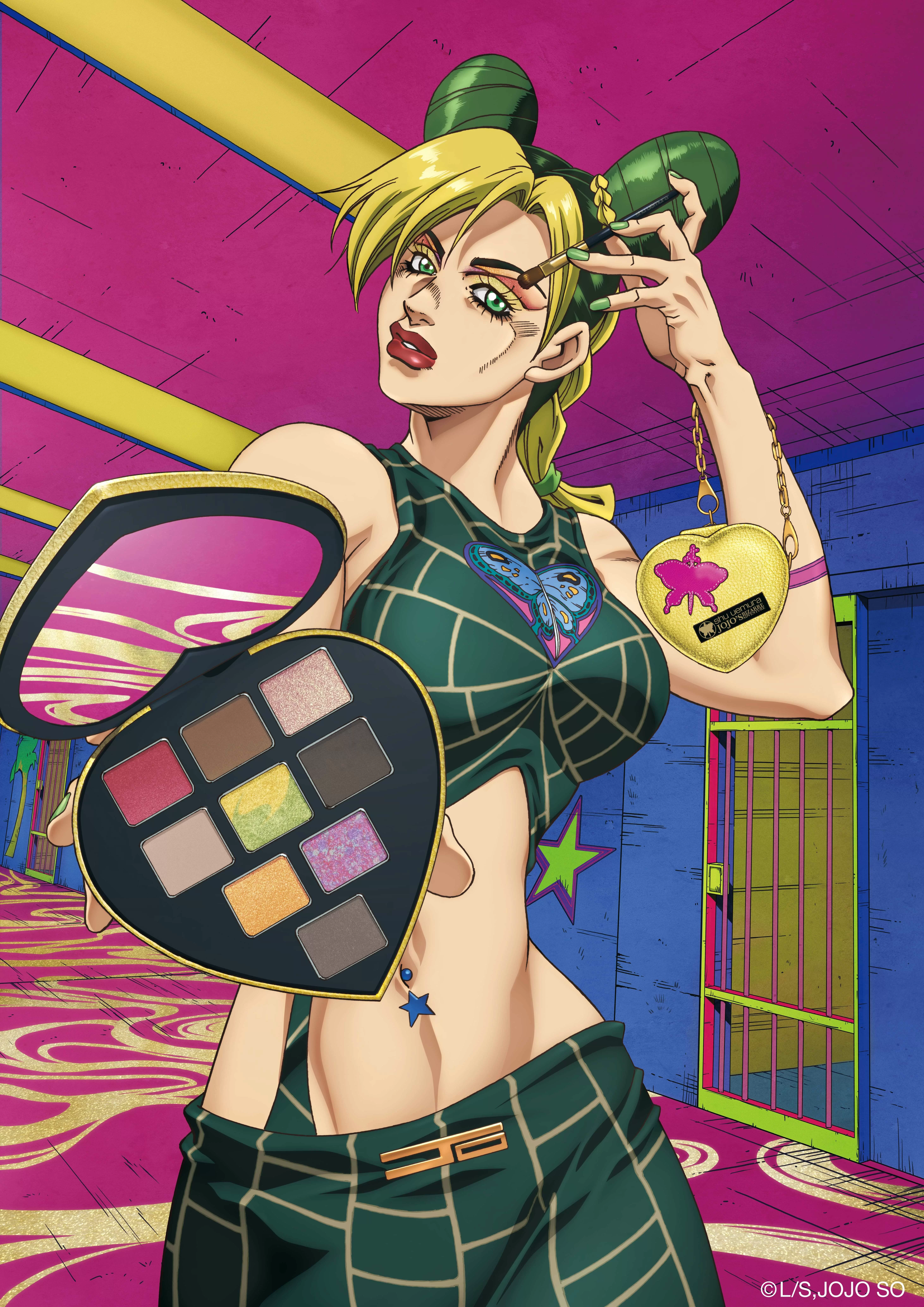 品牌與人氣日本動漫《JOJO 的奇妙冒險》聯乘彩妝系列,以第六部《石之海》女主角 (空條徐倫) 為限量系列主軸。當中「石之海奇幻眼影組合」有 9 款大膽鮮明的流金粉棕色調,並配合了 5 款質感提升妝效:奇幻大理石、水潤、閃箔金屬、閃鑽及啞光。而「無色限唇膏」則以經典迷幻紋路為靈感,並以 JOJO 標誌性粉紅與青檸綠混合成獨特的大理石紋限定奶杏色調。別怕進入 JOJO 奇異多彩的冒險世界,只管釋放自身美麗潛能。