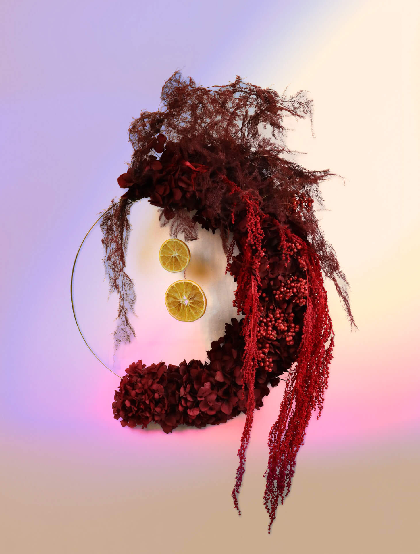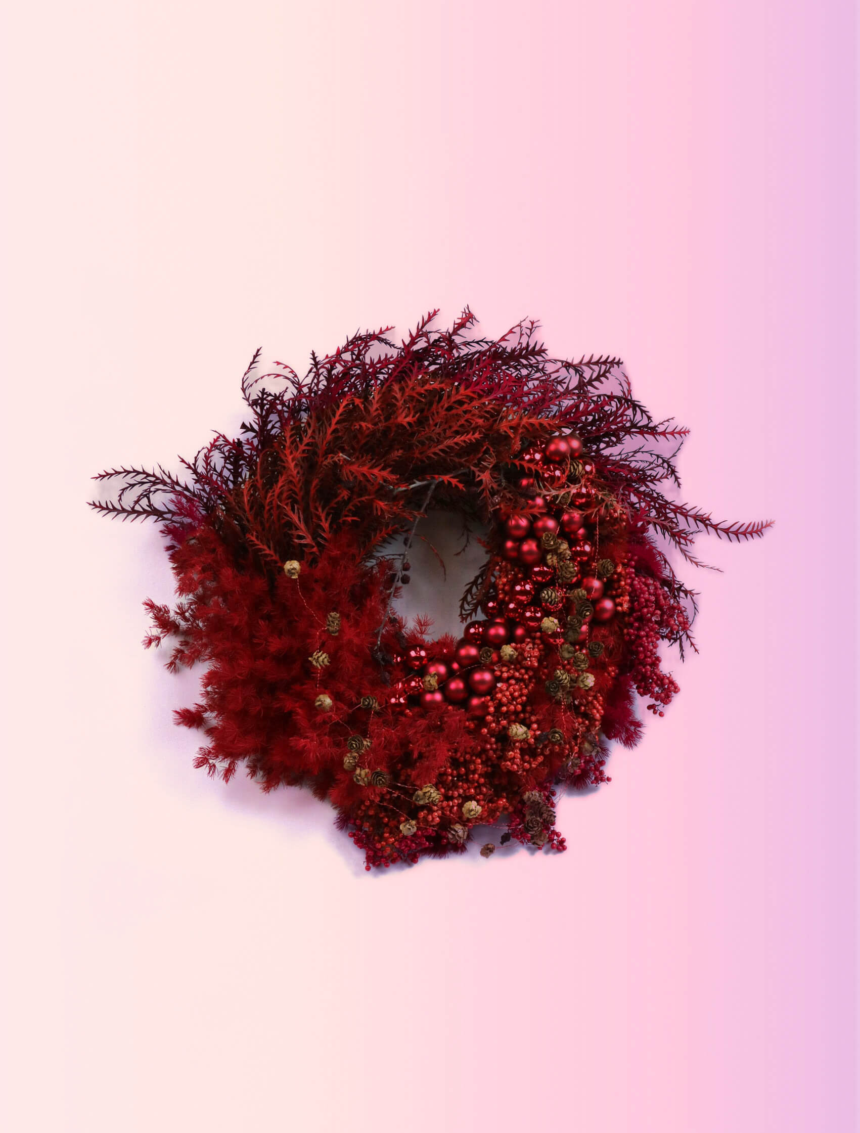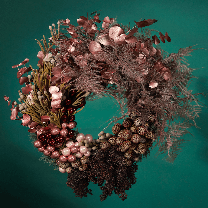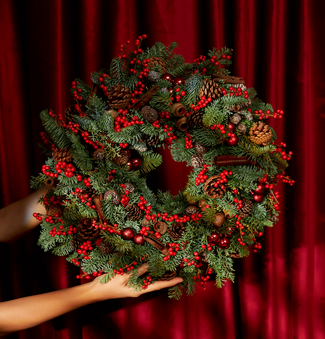 說到聖誕節,又怎能缺少聖誕花圈。畢竟香港寸金尺土,不是每個人的家中都能放下一顆聖誕樹,聖誕花圈就是最好的選擇。品牌花藝師運用了女楨子、玫瑰果、染色尤加利子及意想不到的閃爍聖誕飾品配搭,展示非凡創意。除了經典花圈外,新穎的月亮形狀花園將會於今個聖誕首度登場,為喜歡與別不同的你帶來驚喜,多個不同尺寸款式總有一個適合你。