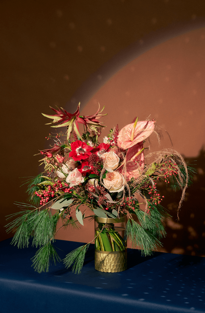 上班已經夠讓人筋疲力盡,幾乎讓我們失去在重要的人如親朋好友之間發光發亮的力氣,不過不用擔心,今個聖誕節有 BLOOMS & BLOSSOMS 的 BLOOMS & SPARKLES 系列為我們代勞。閃爍的金片及閃石象徵佳節裡於空氣中蔓延的派對氣氛。系列中滲入低調的的士高玩味,再以鮮花、乾花、聖誕裝飾及羽毛等新舊配搭,呈現傳統節日與時尚現代生活的並存的概念。