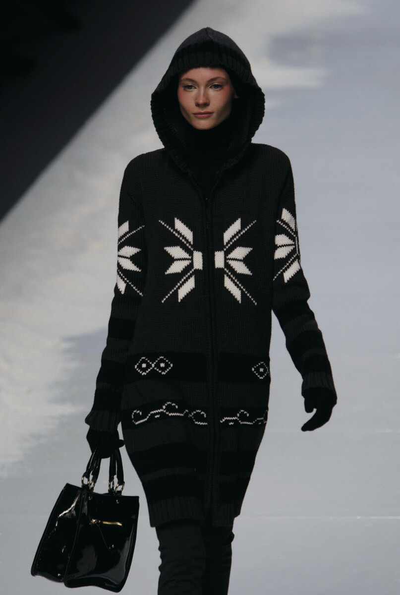 接着不再是白色的天下,黑、紅與粉紅開始陸續登場,恍如小時侯穿的織圖案毛衣配短裙,令 Blugirl 的少女形象更鮮明,不是硬裝可愛的假天真,而是帶點俏皮的年輕感覺。也許有人會不禁懷疑這一系列單薄衣裳怎麼可以抵擋寒冬,這好比問家裏 16 歲的妹妹怎麼兩天不睡覺仍有氣力跟朋友去跳舞一樣,總之青春無敵!