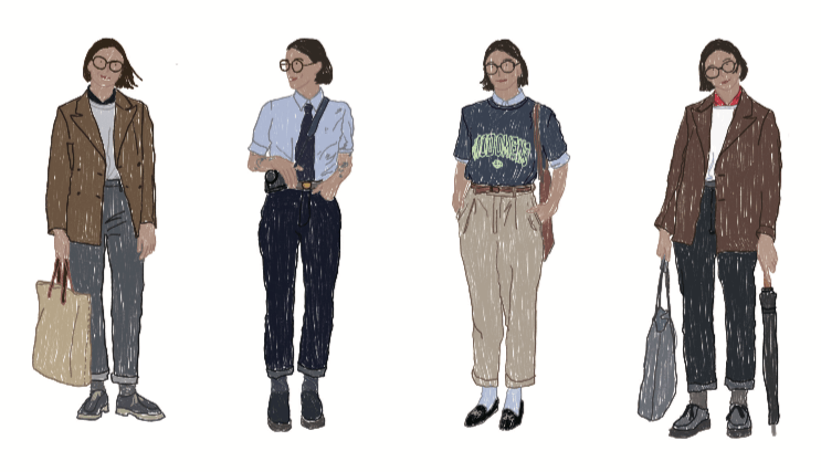 我常穿四四方方的、男裝的剪裁!我真的喜歡運用自己的衣著塑造出有趣的線條和輪廓。我非常喜歡尋寶,所以善慈機構開的二手店、各種跳蚤巿場、古著店都是我的至愛!更有趣的是,你永遠不知道自己將會找到什麼,而那些物品背後的歷史更令它們增添了多一重意義。