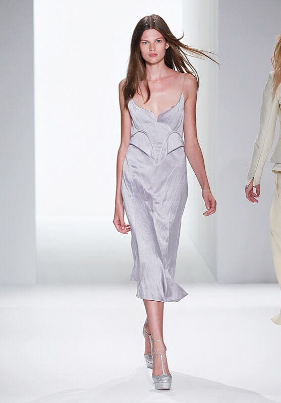 憑藉簡約的設計,以往 Calvin Klein 予人的印象總是剛強、中性化。然而本季可見 Francisco Costa 開始了他個人的變革。最明顯是整體用色、線條及物料上均突顯出品牌較少有的陰柔、女性化一面。縐褶、柔和的色調、均勻的輪廓、穩重的裙襬和剪裁流暢的衣領,突出了季節的美感。儘管方向有所改變,Francisco Costa 依然保持品牌簡潔如一的美感。