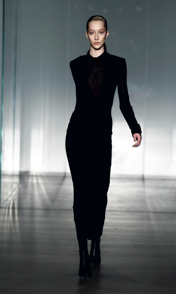 乾淨俐落的線條,配合秋冬季的「指定」顏色:海軍藍、炭黑、 深灰及紫色,不同質感的布料造成對比,就衣服輪廓而言,這個系列有着淡淡的 60’s 及極重的男裝味道,一張張幾乎沒有化妝的模特兒素淨面孔與光滑整齊的秀髮,將品牌的 minimalism 演繹得恰到好處。全個系列只有 3 條晚裝裙子,可能是看準了職場女性的需求,可以由辦公室到酒會都能應邀的衣服才是最重要的項目!