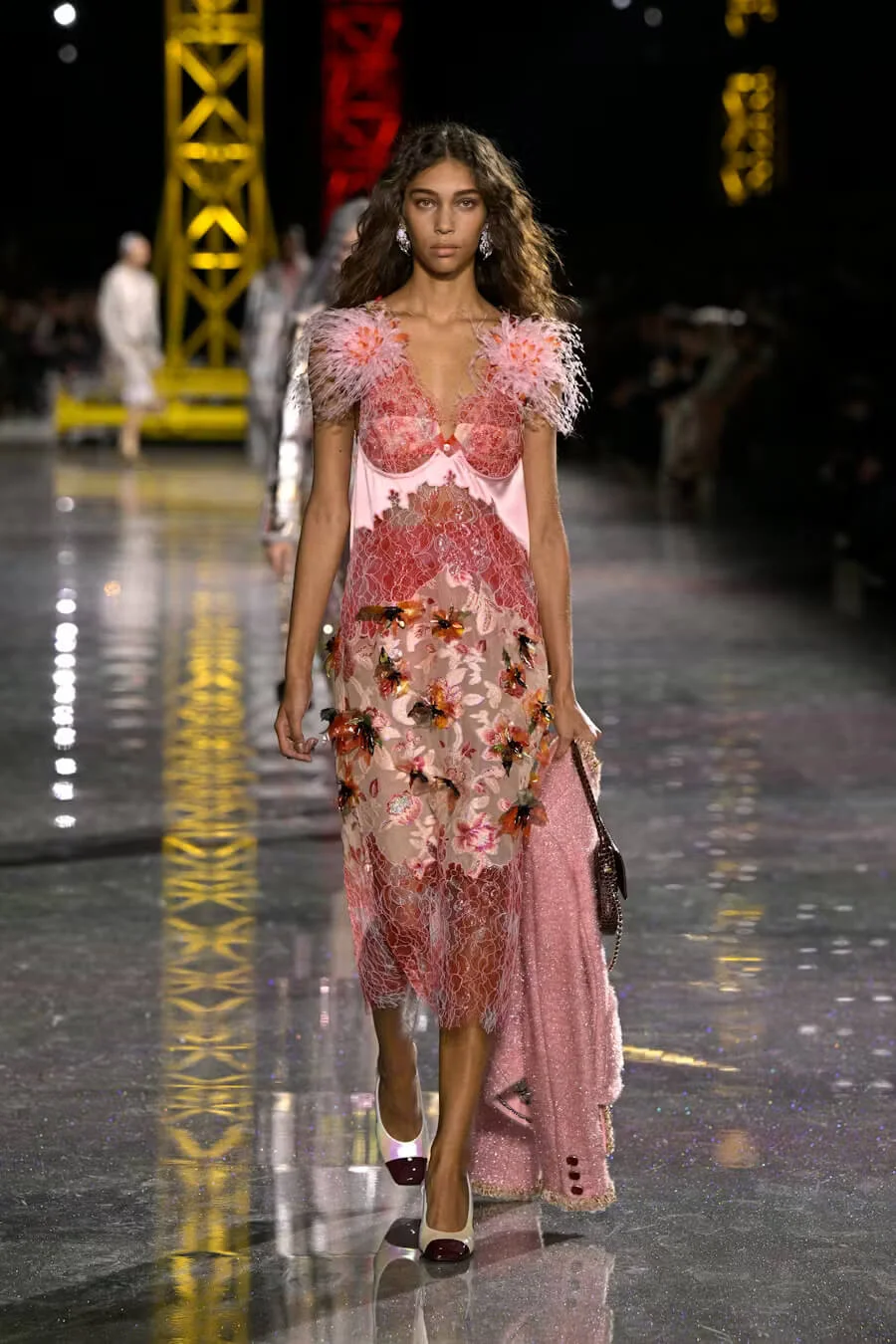 隨著夜幕降臨,秀上展現出柔美流暢的質感,線條流暢的外套和低腰線連身裙,層疊垂墜,或簡約質樸,或華麗點綴,核心依然充滿動感活力。
