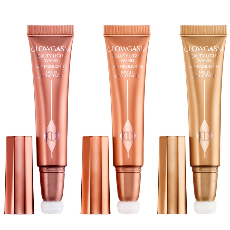 有留意她的作品的話,她把妝容重點放在透亮光澤的底妝,喜愛以好幾樣的打亮產品做出明亮、晶瑩剔透的無瑕 goddess skin,女神般的夢幻迷人。所以 Charlotte Tilbury 經常被讚譽為「光澤女王」,她認為光感於妝面、身體與心靈上極具可塑性並擁有充滿激情的神奇力量,沒有人比她更了解光芒的魔力。最近,這位 queen of glamour 推出一口氣五樣產品的 Glowgasm 系列,誓要把亮澤的妝容更加耀眼。