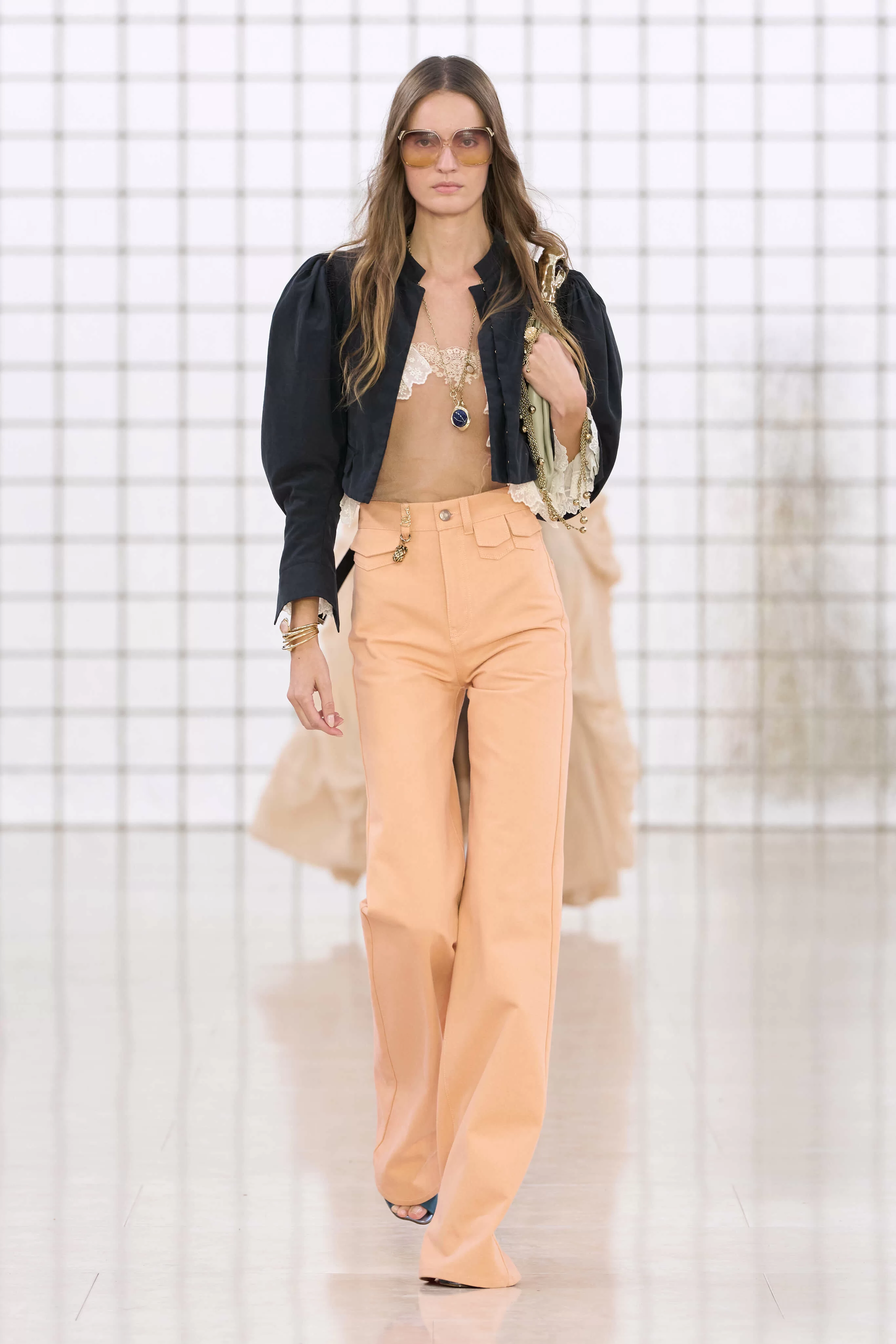 相對其他設計師,不難看出 CHEMENA 對美學的一致性,在 2024 秋冬系列中,她以薄紗結合皮革合演出一場時尚協奏曲,在今季再次以薄紗作主角,並加上荷葉邊和刺繡,讓整個系列變得更為輕盈,並帶出一種難以形容的歡快感。CHEMENA 在筆記上寫道:「CHLOÉ 不是一個轉瞬即逝的時刻,而是一種由直覺和樂觀精神主導的恆常心態。我認為感覺和直覺對於造就這種極為個人、私密而迷人的衣著方式最為重要。」換言之,「自由」不單是指一個身心狀態,更是一種非常個人而迷人的表達方式。