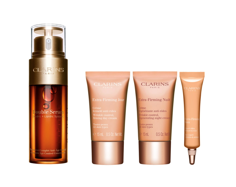 想體驗阿佘和男神朱鑑然的護膚秘密?CLARINS 現正有購物優惠,立即透過 Clarins 官網或者 WhatsApp 選購 Double Serum,更可享煥顏緊緻禮品3件裝(價值 $686)兼免運費,讓你一次過體驗這個黃金組合的護膚功效!