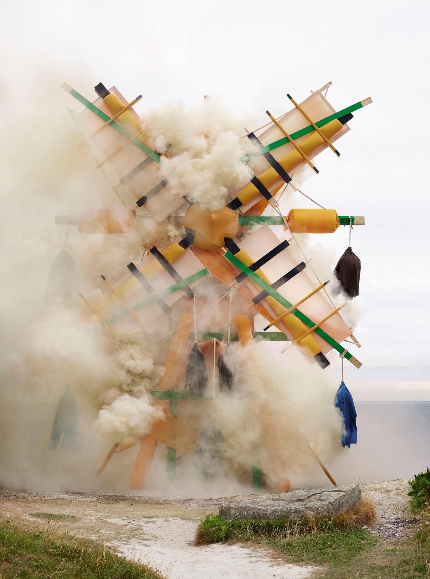 AW18的 廣告大片 Craig Green 用上一貫的處理手法,將系列的設計化身成一個裝置藝術兼雕塑,最新的廣告與鐵腳班底再度合作,包括Dazed的創意總監 Robbie Spencer、裝置藝術家 David Curtis-Ring 和攝影師 Dan Tobin Smith,呈現一個13米高的巨型大風車,足足用了兩個星期和 18 人的團隊去完成,為了捕捉大風車在不同時段與大自然產生的變化,Smith 用上4天時間進行拍攝。