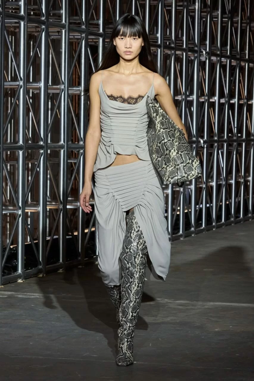 經過早前巴黎與米蘭時裝週的洗禮後,今回我們移師到紐約欣賞由澳洲設計師 DION LEE 策劃的 2023 秋冬大作,作為近年最炙手可熱的中性與性感服裝代表,DION LEE 出場自然成為焦點。本系列名為《SECOND SKIN》,靈感來源自爬行類動物,參考了大蛇、鱗片和蛻皮等元素設計服裝,設計師希望以透膚、流蘇、和鏤空貼身設計重塑「皮膚剝落」的意思。