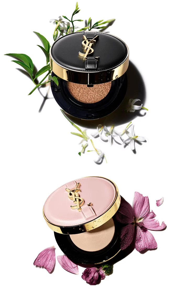 兩款皇牌氣墊粉底,皮革限量粉盒一黑一粉,都有經典金色 CASSANDRE 標誌。前者含保濕和抗氧功效的茉莉花瓣,16 小時水潤不油膩,打造無重輕盈霧光妝感;後者以舒緩及再生功效見稱的淡紫色花卉錦葵和萬壽菊為主成分,有助促進血液循環及鎮靜肌膚,塑造健康亮澤膚色。