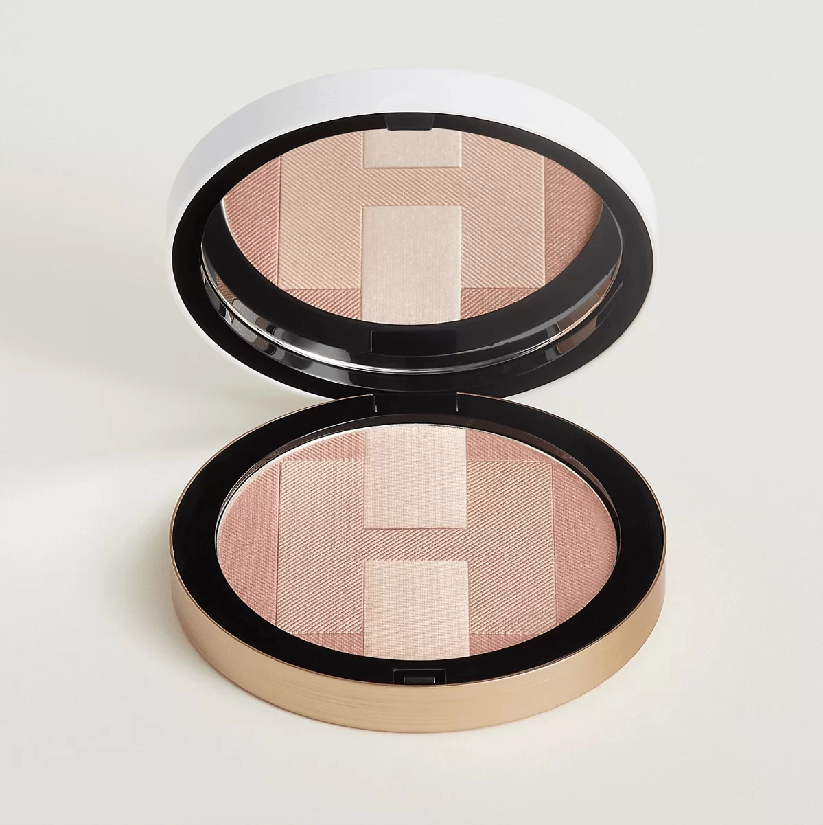 粉餅表面有 HERMÈS 經典 H INITIAL,大方又有現代感。含 88%天然成分及透明質酸衍生物,質感親膚,柔滑細膩粉末可即時煥發肌膚的自然美感,打造曬後般若隱若現的紅潤和光澤。
