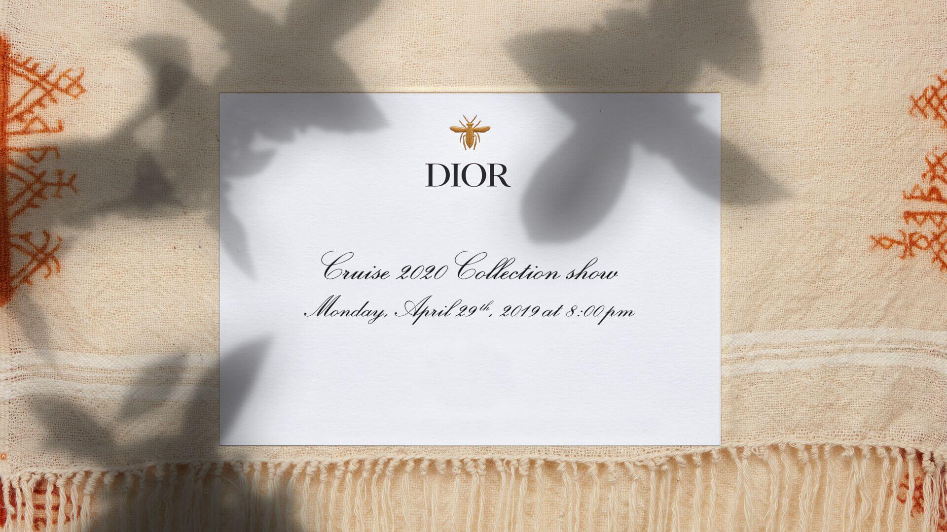 Dior繼女騎士雨中秀與空中飛人夢工場後,Maria Grazia Chiuri即將帶領品牌於鮮摩洛哥的馬拉喀什Marrakech發布最新CRUISE 2020系列,今次品牌同場在秀前為我們準備好邀請函,全新CRUISE 2020系列即將在香港時間 4 月 30 日凌晨三點由MING’S為你實時直播。