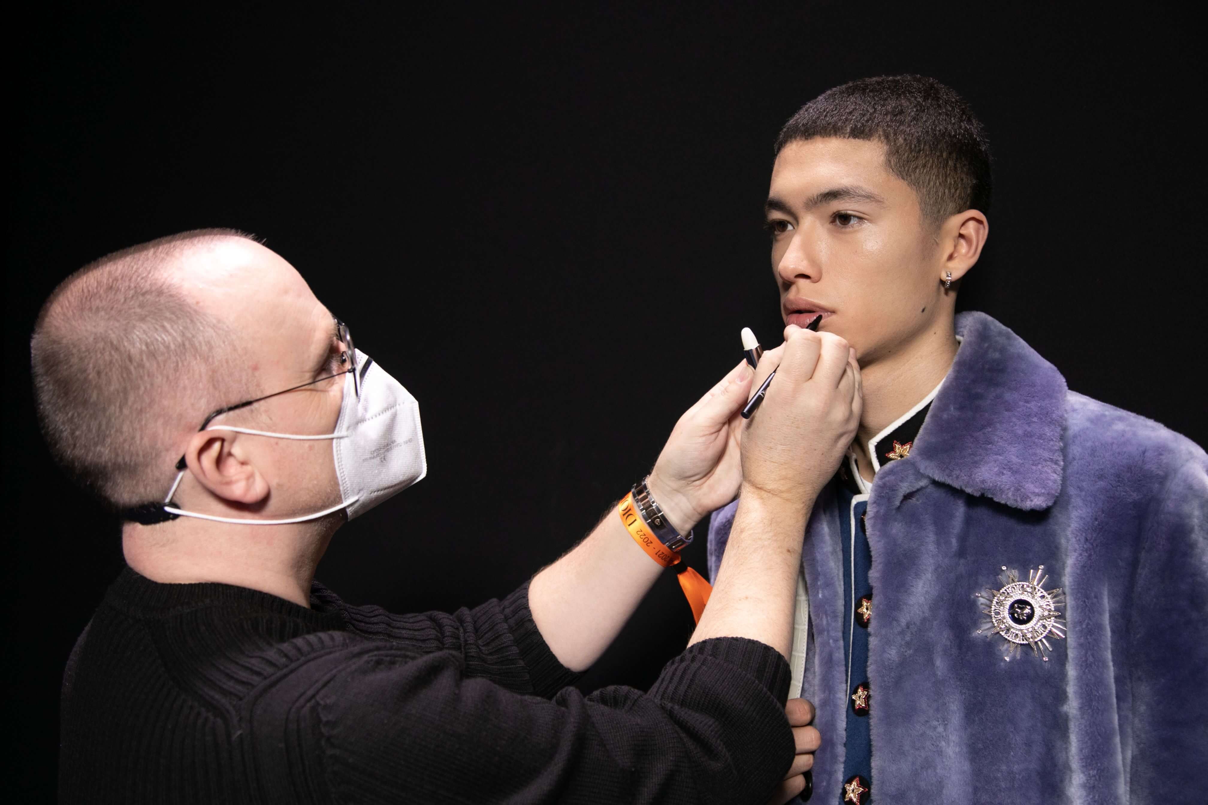 DIOR 2021 秋冬男裝騷的妝容由品牌的創意及形象總監 PETER PHILIPS 操刀,整體妝容強調乾淨感。在妝前護膚方面,先用上 CAPTURE TOTALE「完美活能系列」當中的 SUPER POTENT SERUM 「全效抗衰老精華」及 FIRMING & WRINKLE-COLLECTION CREAM 「超效乳霜」來為肌膚保濕。