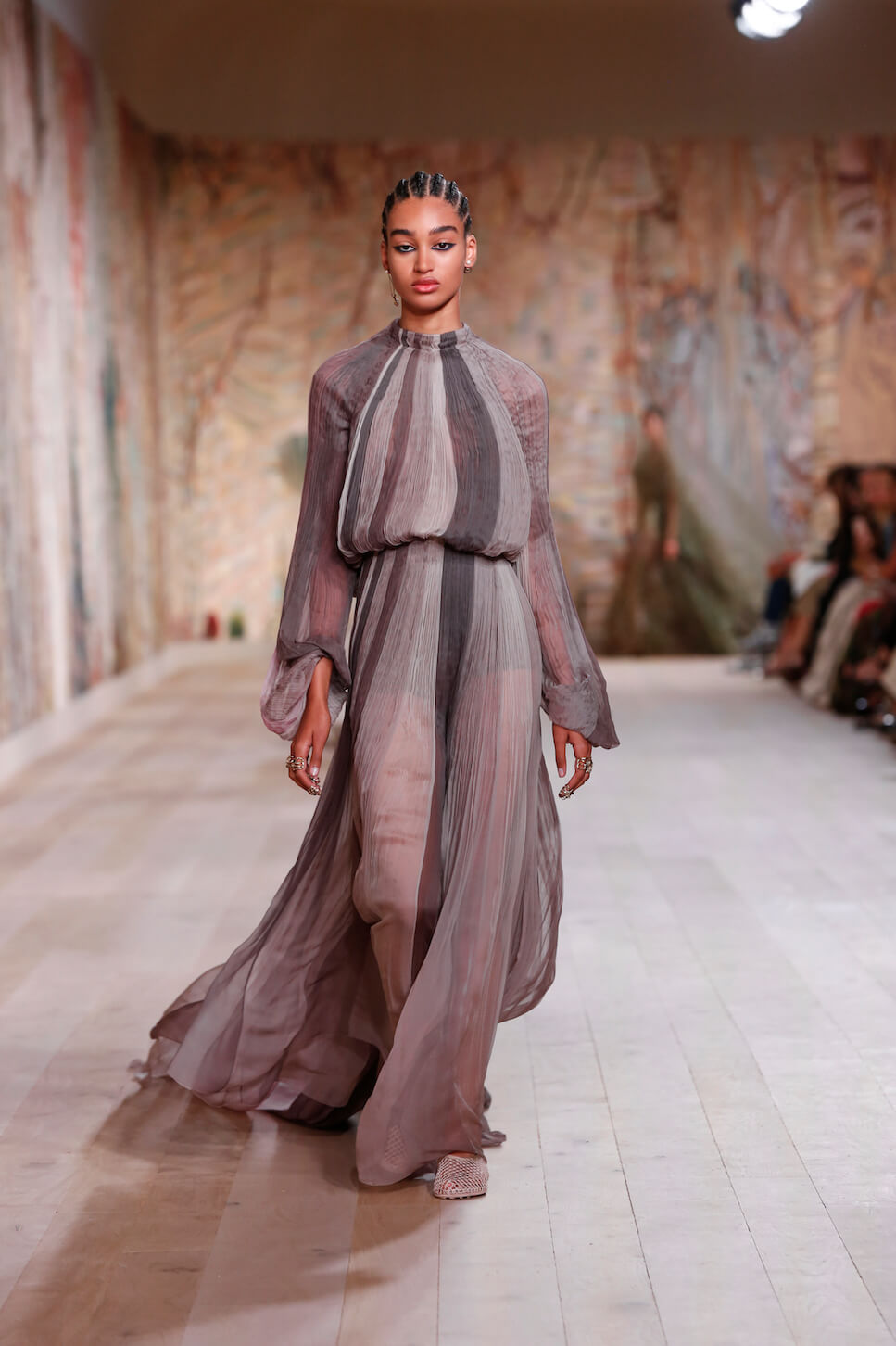DIOR 的高訂系列經過了兩季夢幻風格微電影的發布,實體騷相隔一年半後終於重回羅丹美術館舉行,而藝術總監 MARIA GRAZIA CHIURI 將系列回歸布料的本身,以羅馬科隆納宮的刺繡廳為靈感,向女性主義致敬。