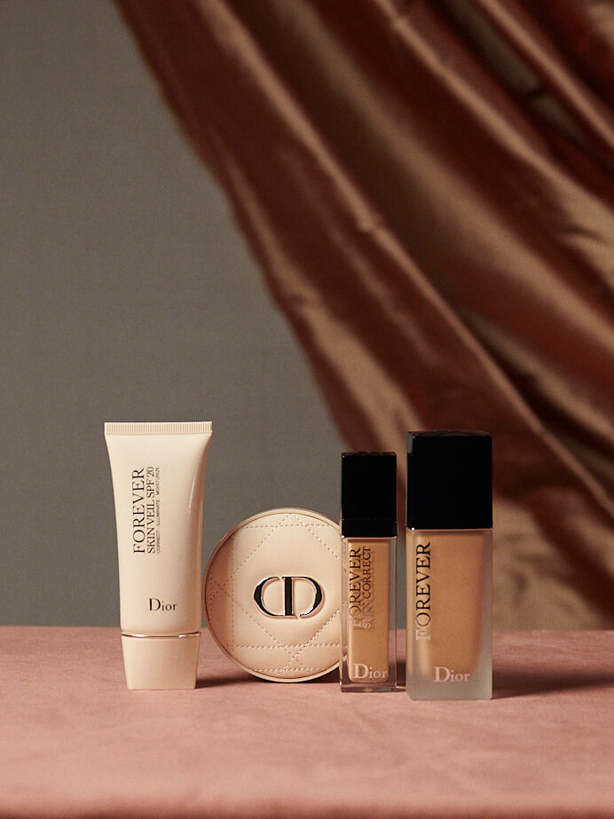 所以在底妝方面先用上 CAPTURE TOTALE「完美活能系列」當中的 SUPER POTENT SERUM 「全效抗衰老精華」及 FIRMING & WRINKLE-COLLECTION CREAM 「超效乳霜」來為肌膚保濕,然後搽上 DIOR FOREVER SKIN VEIL SPF 20 作為妝前打底。粉底方面則搽上非常少量的 DIOR FOREVER 粉底液及 DIOR FOREVER SKIN CORRECT,給肌膚適量的遮瑕後再用上帶有微微珠光的 DIOR FOREVER CUSHION POWDER 來定妝。