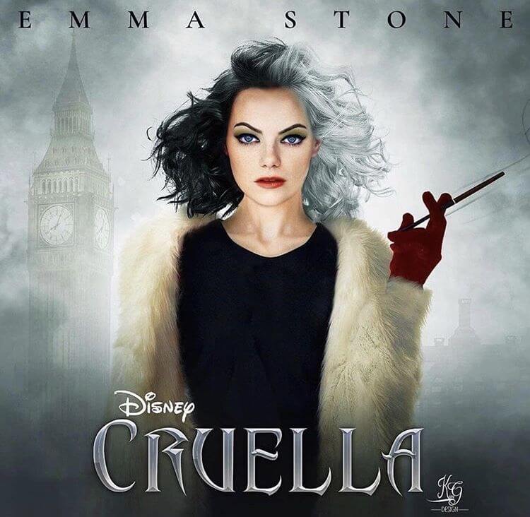 片中 EMMA STONE 頂著一頭 CRUELLA 最令人印象深刻的黑白髮型,穿上經典的貂皮大衣和紅色皮手套,神還原了角色的造型,令人已經開始期待電影的正式上映了!