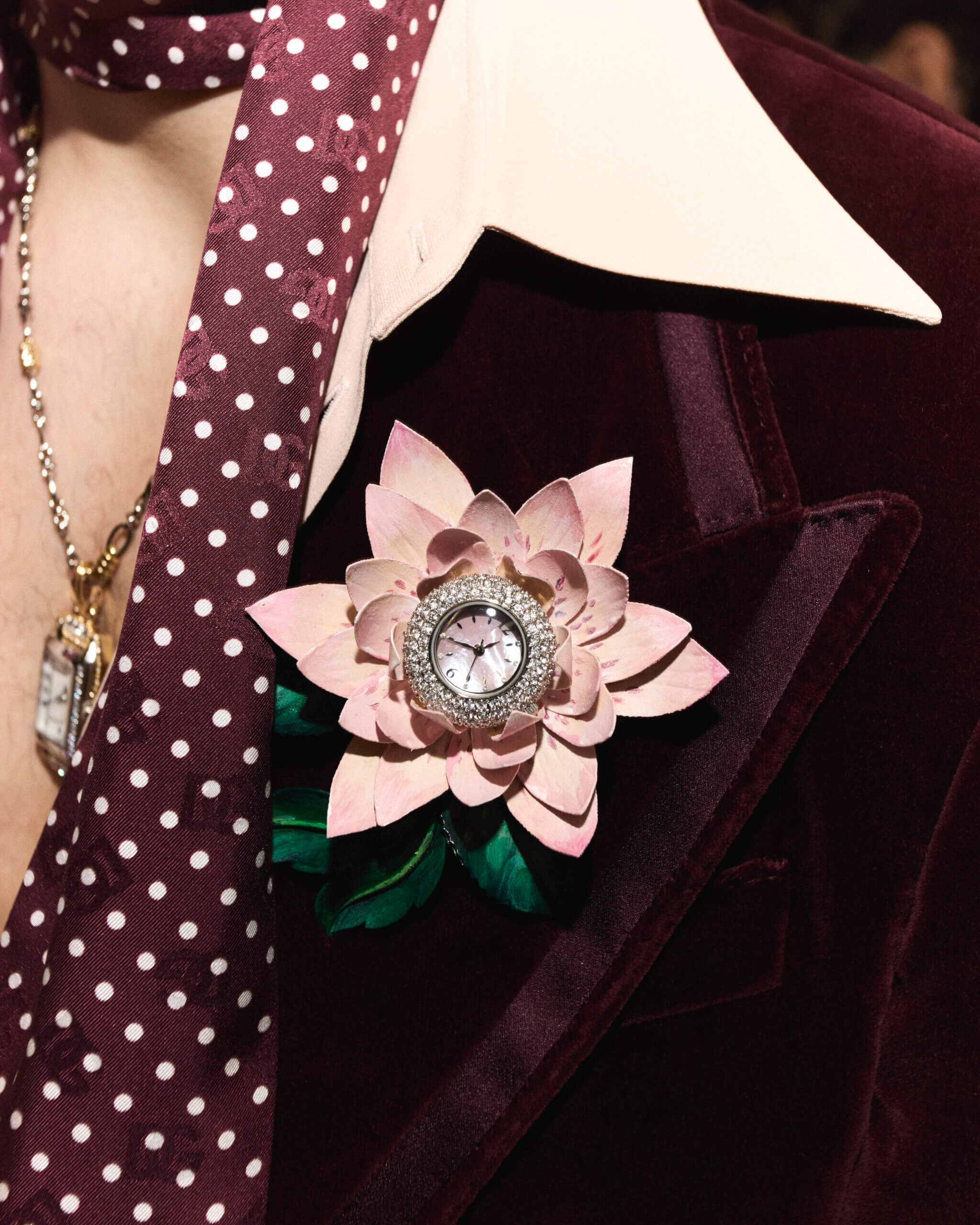 在這個系列中,DOLCE & GABBANA 不僅從多個不同年代的服裝氛圍和剪裁輪廓取材外,更讓人感到眼前一亮的是,品牌把「腕錶」變成特別的時裝配飾—— 如出項鍊、吊飾、胸飾,甚至是皮帶扣,既能展現出設計與工藝之美,亦能突顯出自己的個性與格調。