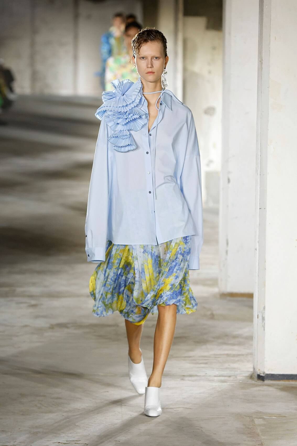作為第一和第三部份之間的過渡,DRIES 運用了他對顏色的完美調度。以灰粉色調設計的一系列打扮除了充滿春夏氛圍,更給人一種清晨的感覺,彷彿黑暗散去,而光明逐漸到來。