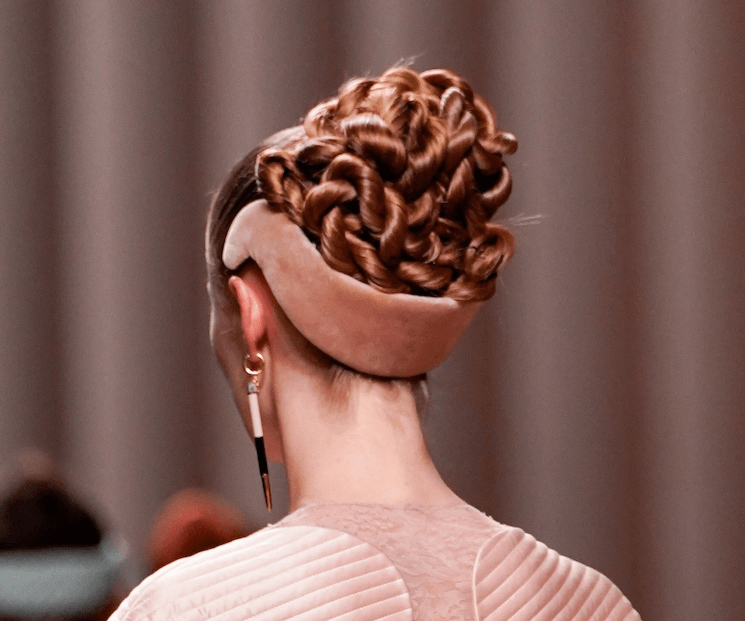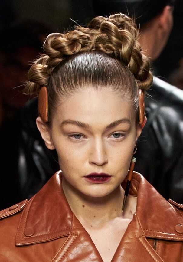 這個猶如出自於星球大戰劇中的髮型,十分惹人注視!把頭髮扭緊編織成辮子,並盤起為高髻,再配戴上如牛角般的皮革或絲質頭飾,令整體造型更顯典雅感,不禁令人想起星球大戰的公主Princess Leia,藉此為這個系列注入女性力量。