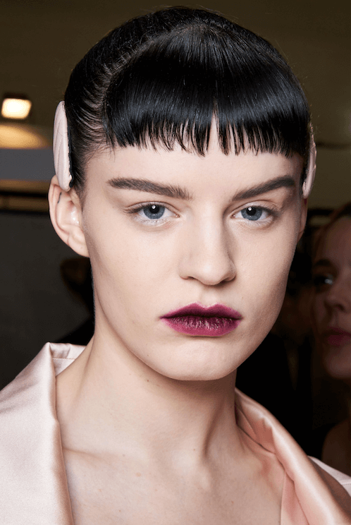 談到妝容的部份,FENDI 以個性魅力且散發著女性氣質的妝容作呈現,相信最令人深刻的正是那一抹「莓子黑」的唇色,深紫黑色的唇妝充滿高冷的感覺,選擇霧面質感的唇膏和使用暈染手法去上唇妝,就像是在呼喚著氣勢感的女性力量。