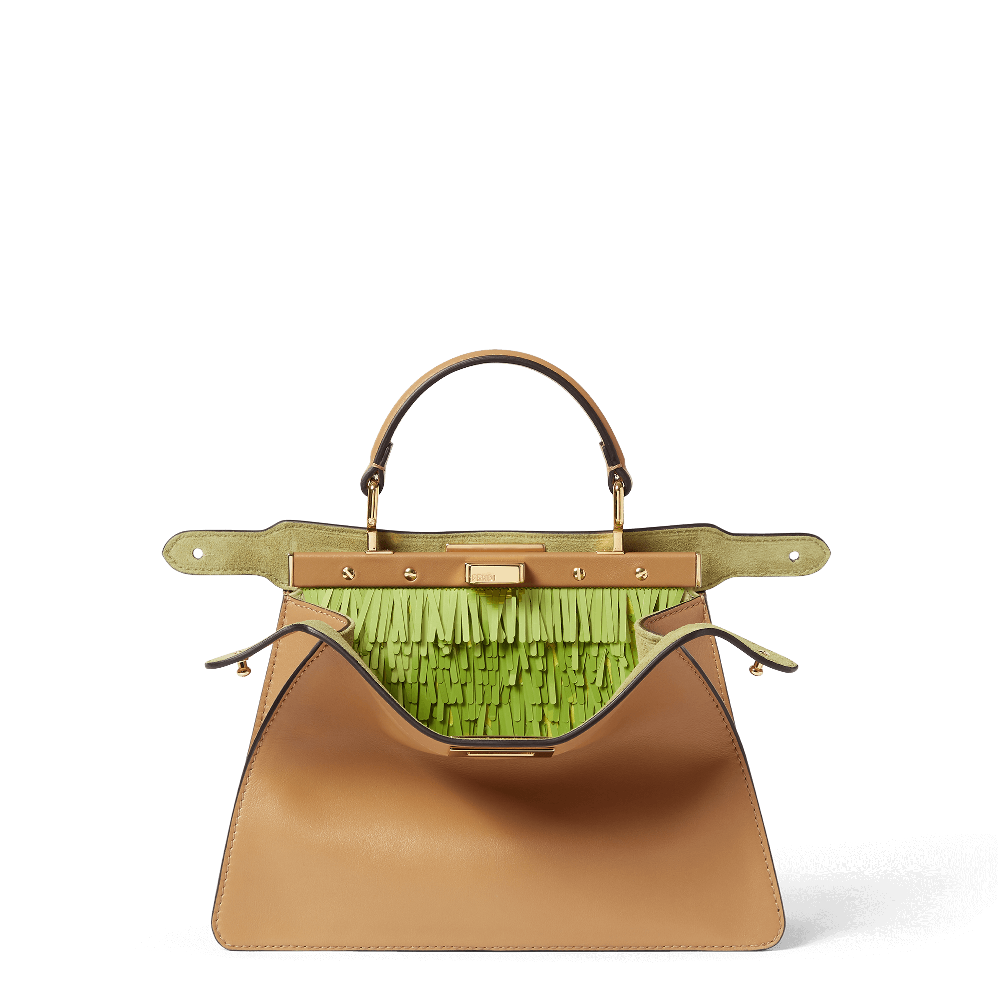 當你打開 FENDI 2026 春夏系列的 PEEKABOO 手袋後,就會發現品牌在袋內由亮片、珠飾、飾釘和水晶打造出繽紛感十足的奢華世界,每一處絢麗的裝飾都是由技藝精湛的工匠親手打造,單是亮片工藝,就需耗費超過 40 小時,完美呼應手袋名稱 PEEKABOO(躲貓貓)之名,把設計玩味與精湛工藝結合。