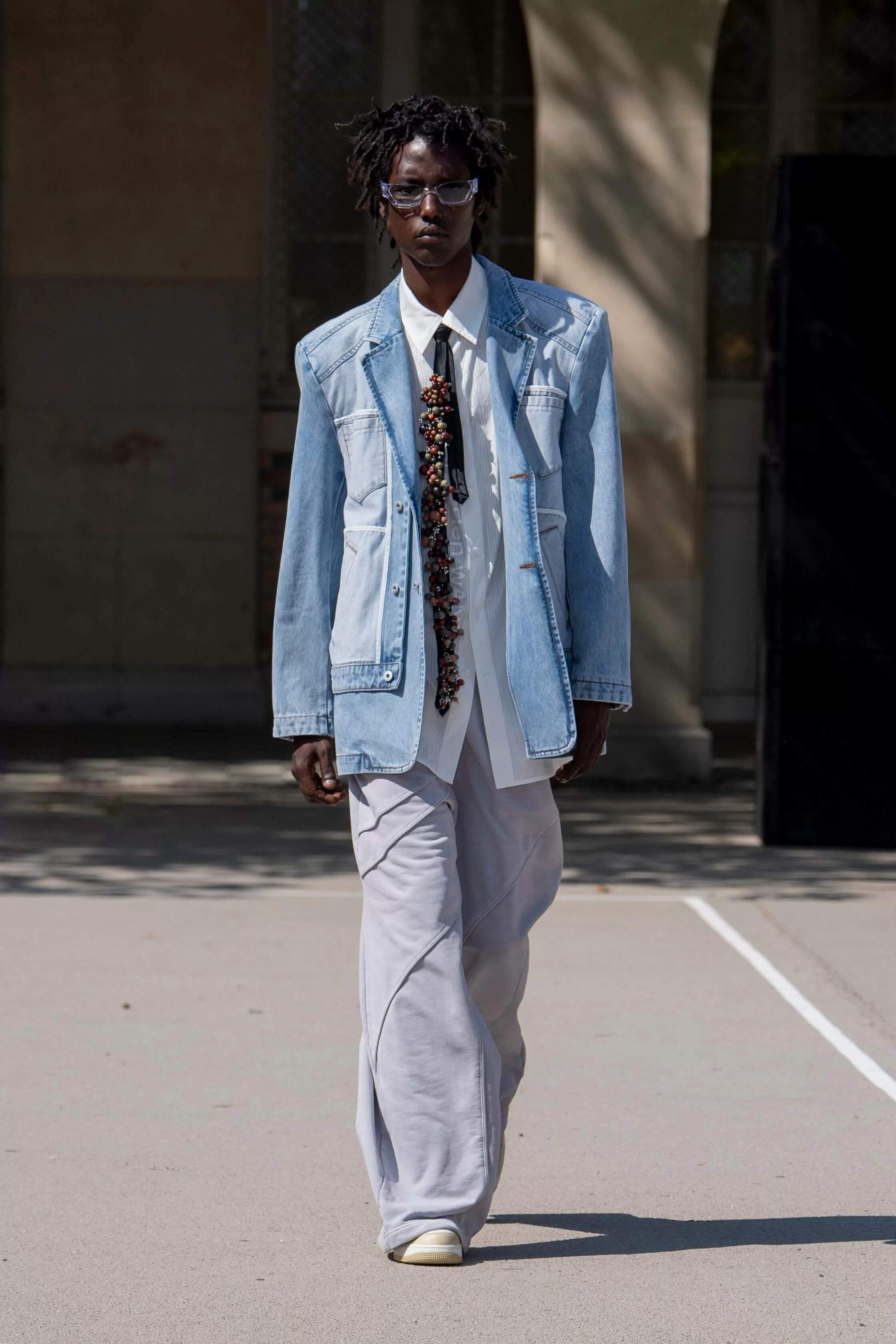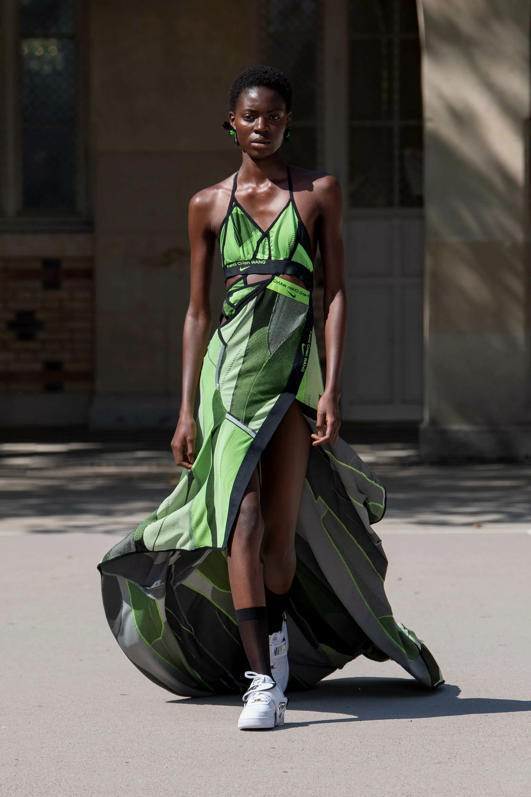 在中國傳統文化中,龍與鳳代表著愛情的結合,而鳳凰也是品牌標識性符號,圖騰以獨特手法呈現在牛仔外套、襯衫、西服套裝等單品上,再通過鏤空設計、解構、拼接及立體剪裁,打造出中西融合、個性前衛的風格。除此之外,FENG CHEN WANG 與再構的 NIKE 服飾亦在秀場搶先釋出。