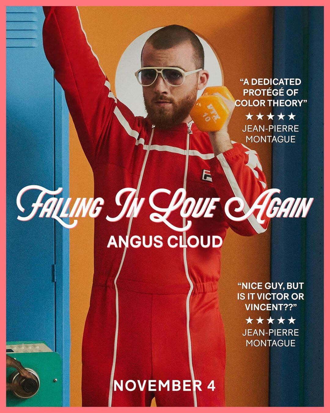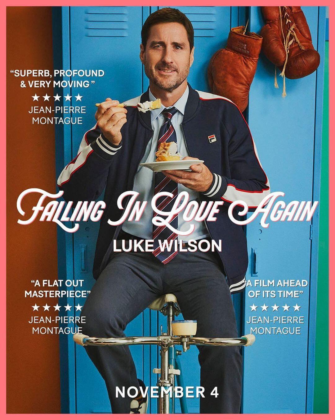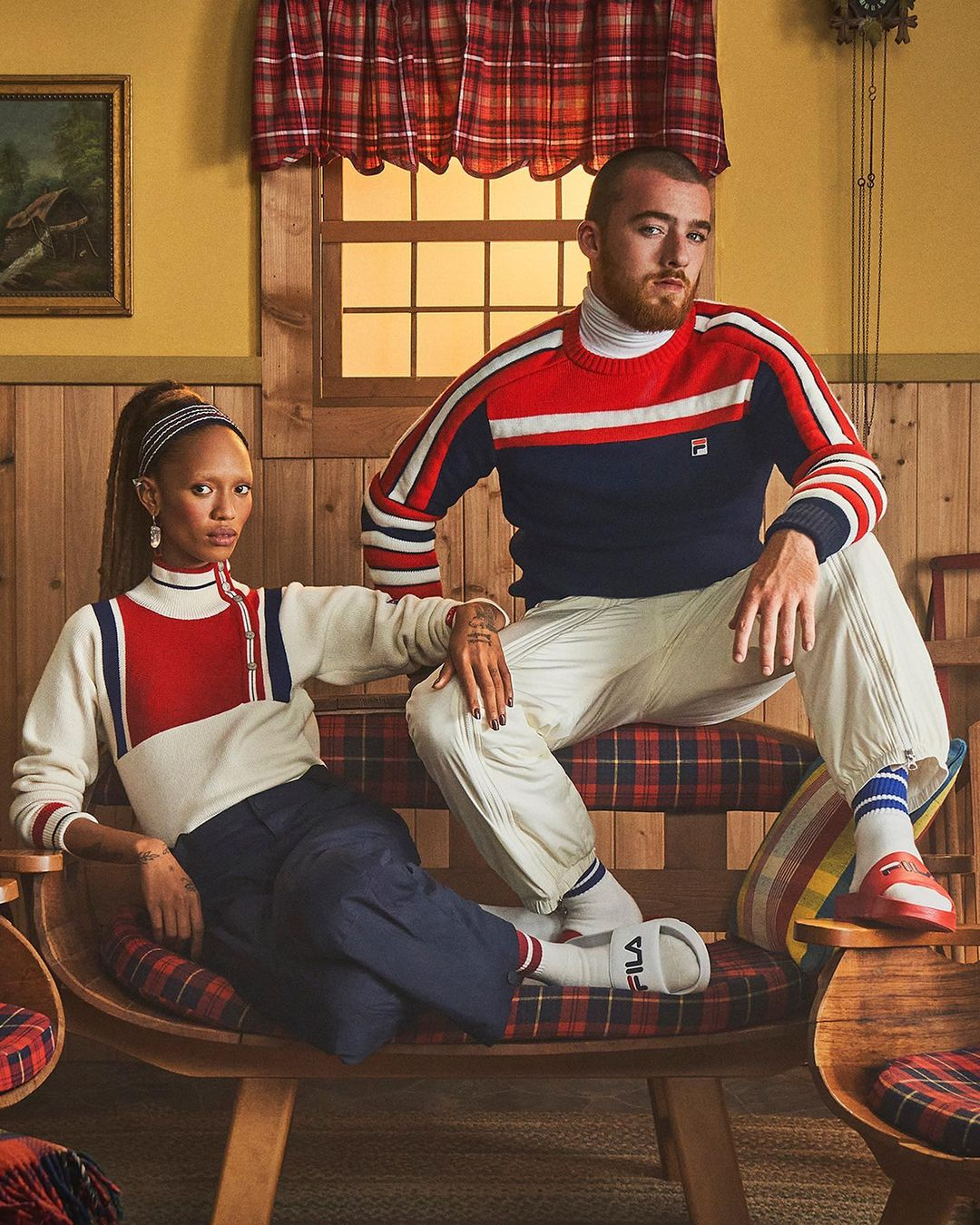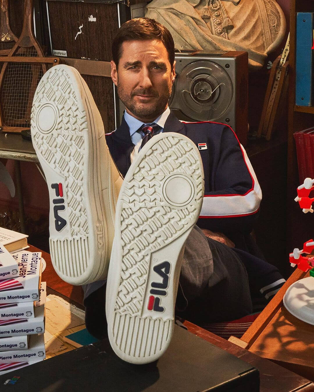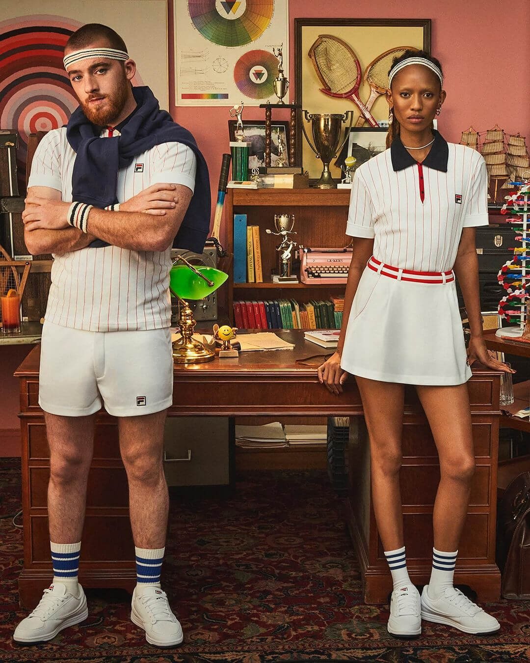 故事中 LUKE WILSON 飾演講究穿搭、相信情感顏色理論的前網球名宿 JEAN-PIERRE MONTAGUE,在職業生涯完結之後,受到熱愛的品牌 FILA 邀請,擔任了品牌大使。兩位分別由演員 ANGUS CLOUD 和 ADESUWA AIGHEWI 飾演的門生身穿幾套 FILA 的經典運動都造型,乖乖的聽 MONTAGUE 老師的情感顏色講義以及過往的球壇軼事。