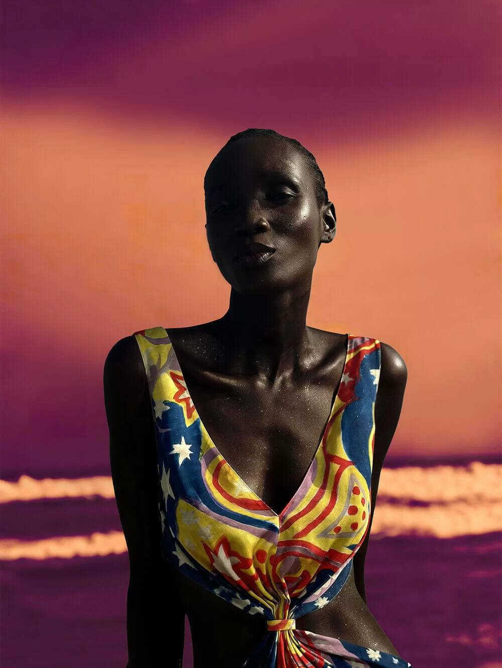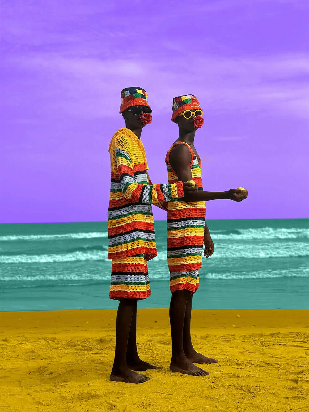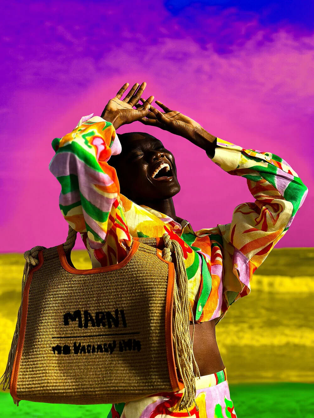 NO VACANCY INN 分別由 TREMAINE EMORY、ADE “ACYDE” ODUNLAMI 和 BROCK KORSAN 三位藝術家和設計師共同創立,雖然 NO VACANCY INN 與 MARNI 並不屬於相同領域,但兩者不論是品牌特質,還是理念方面都不謀而合。FRANCESCO RISSO 以星星、魚、棕櫚樹、雲朵等幻化元素貫穿於整個聯乘系列,由服裝、袋款,以至鞋履和配飾均運用不同圖案印花設計。手袋方面,品牌以拉菲草配搭撞色皮革及草編技術製作 VENICE 迷你水桶袋和 MARCEL 手袋,延續品牌經典款式。