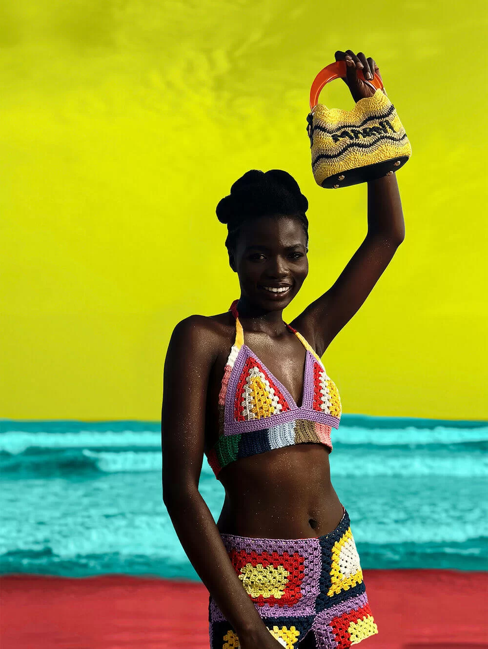 除此以外,今次配飾設計更成為系列的焦點所在,同樣運用拉菲草編織而成的太陽帽和鏤空設計的漁夫帽,而充滿夏天元素的手飾,配上趣怪可愛的品牌 LOGO 字樣吊咀,相信會俘虜一眾粉絲們之餘,也成為今個夏日沙灘服飾的不二之選!