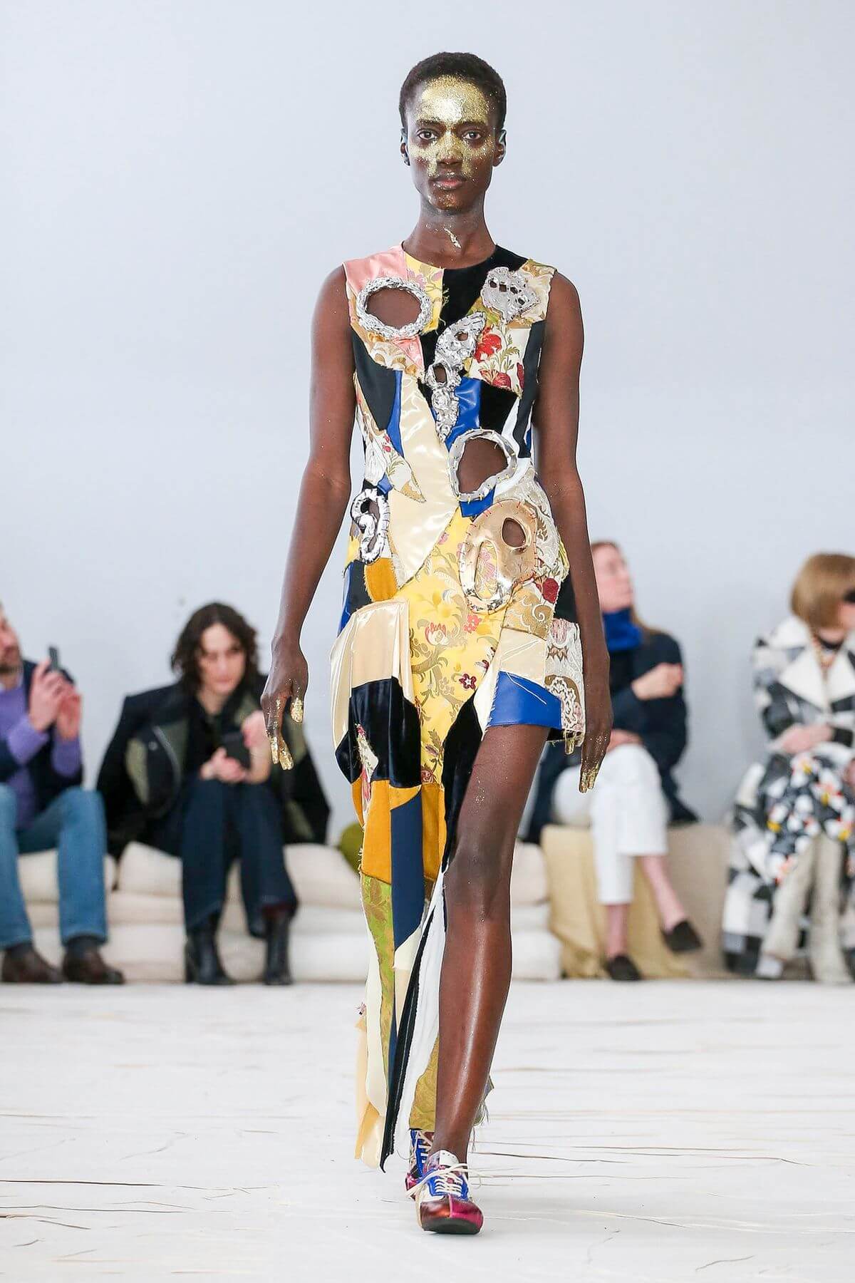 品牌的2020秋冬天橋以簡單的裝飾和禮服中的彩色小塊開始,帶著日間森林的調色板,服裝包括許多細碎和織物細節。溫暖的彩色拼布針織補丁用粗線縫製而成,連衣裙上裝飾金色金屬細節,都帶有原始服裝的概念。模特兒的化妝及頭髮飾以金銀色閃粉,帶有非洲風格民族色彩,臉部及頭髮上的閃粉婉延到頸與肩上,與彩色的衣服成為一體。