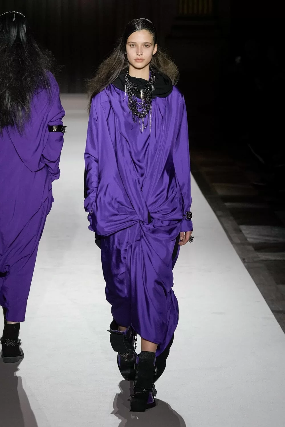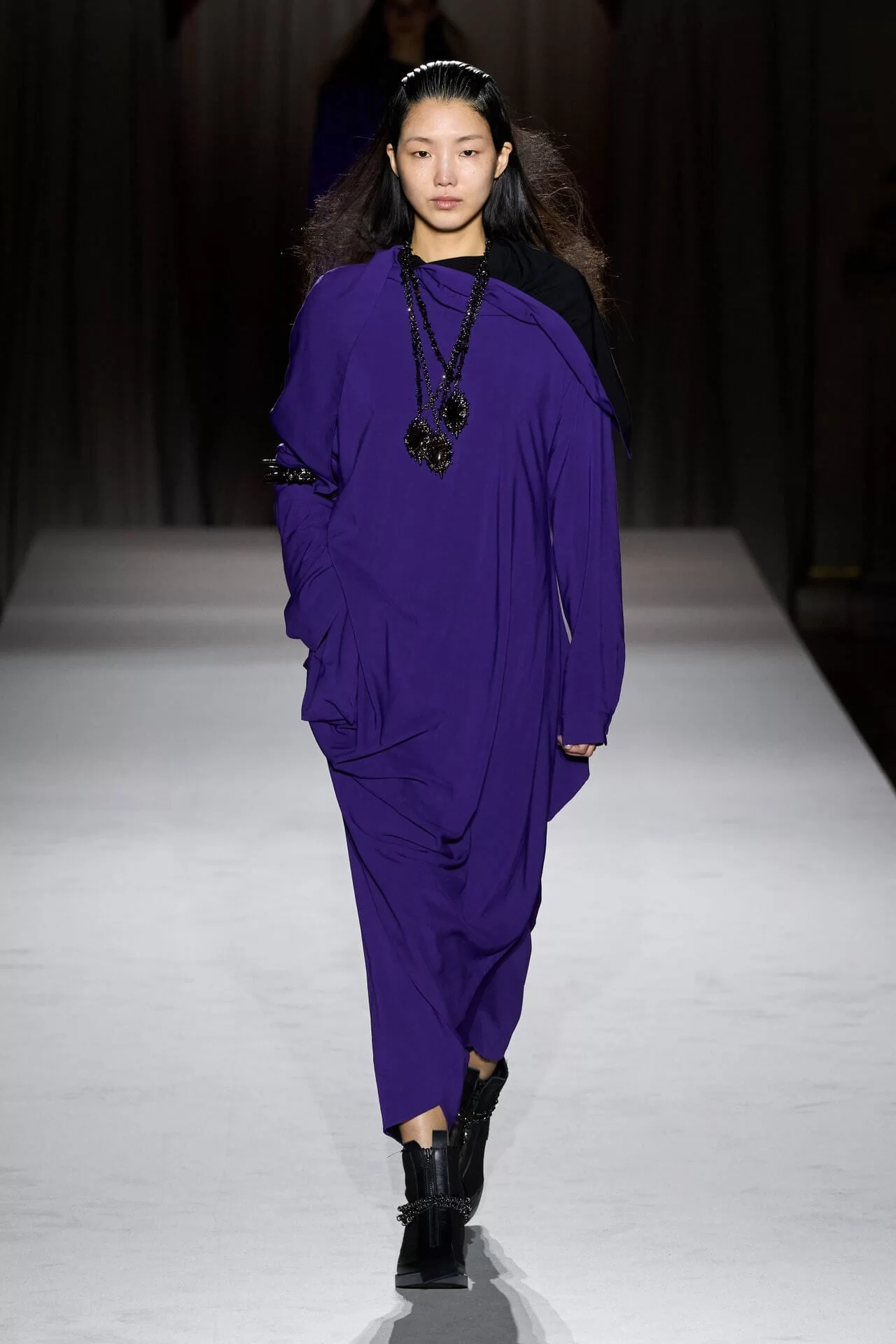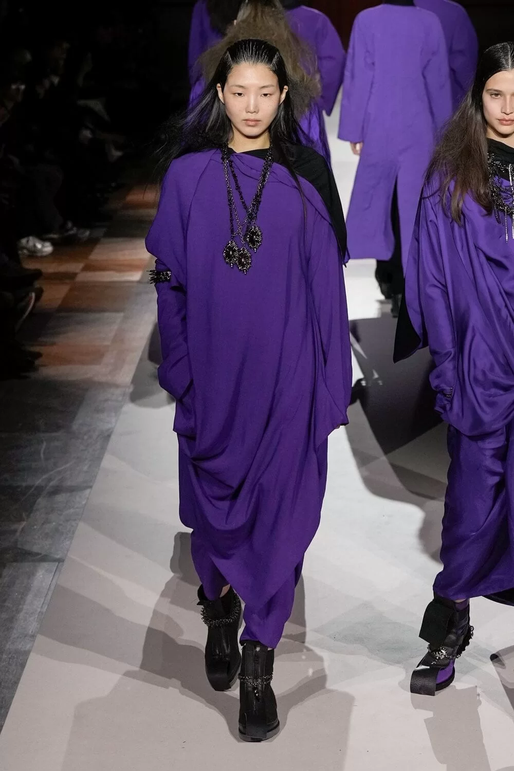 將一抹深邃、神秘而高冷的紫色,點綴於品牌的黑色服裝中,無疑為系列增添了一份視覺魅力,也藉此向大家展現出山本耀司對於「變革」的一份堅持。