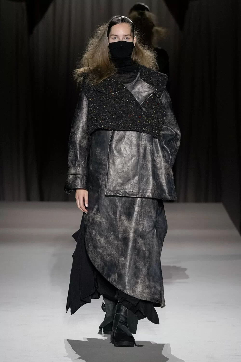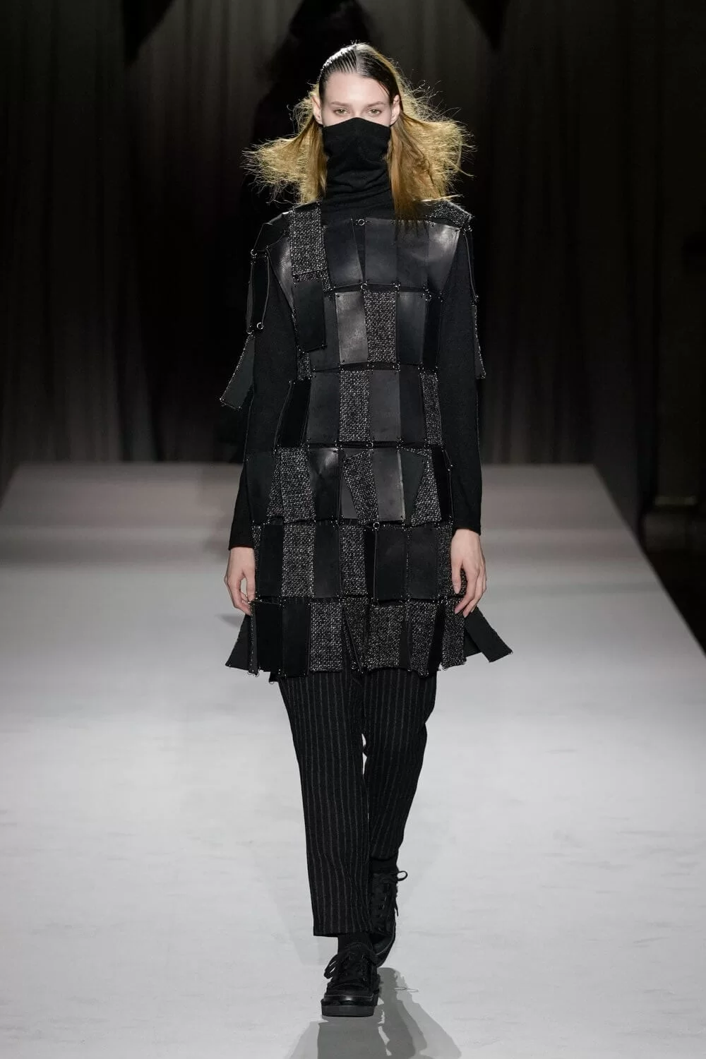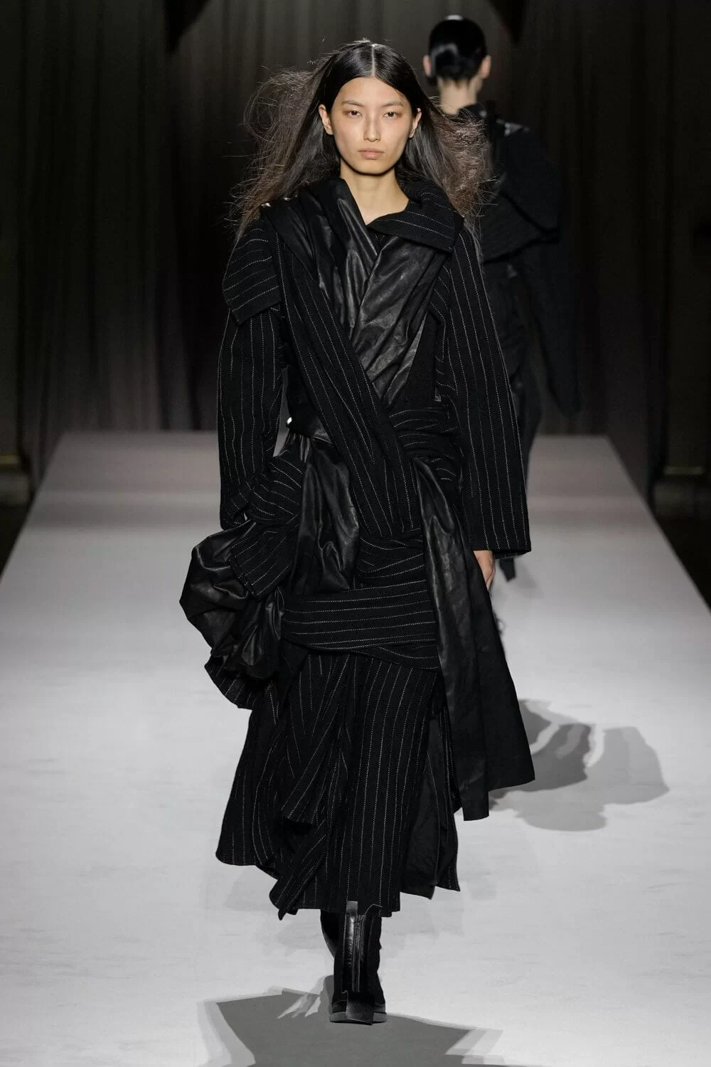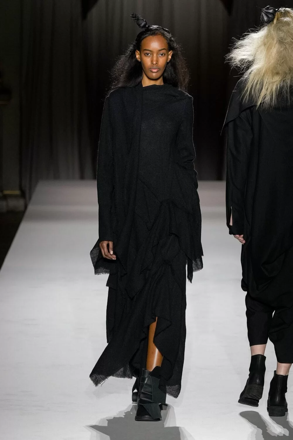 正因為人們看到 YOHJI YAMAMOTO 2025 秋冬的女裝系列上的壓軸音樂,就馬上想起早前上演男裝秀。然而,比起在數月前上演的男裝系列,在這季女裝系列山本耀司更着眼於探索布料與人體之間的關係—— 這YOHII YAMAMOTO 團隊把布料裁剪成不同的小薄片,並以不同的複雜解構重組形式,巧奪天工地把它們拼接出全新的模樣,呈現出優雅、流暢而富詩意,又能保護女性的女裝設計。