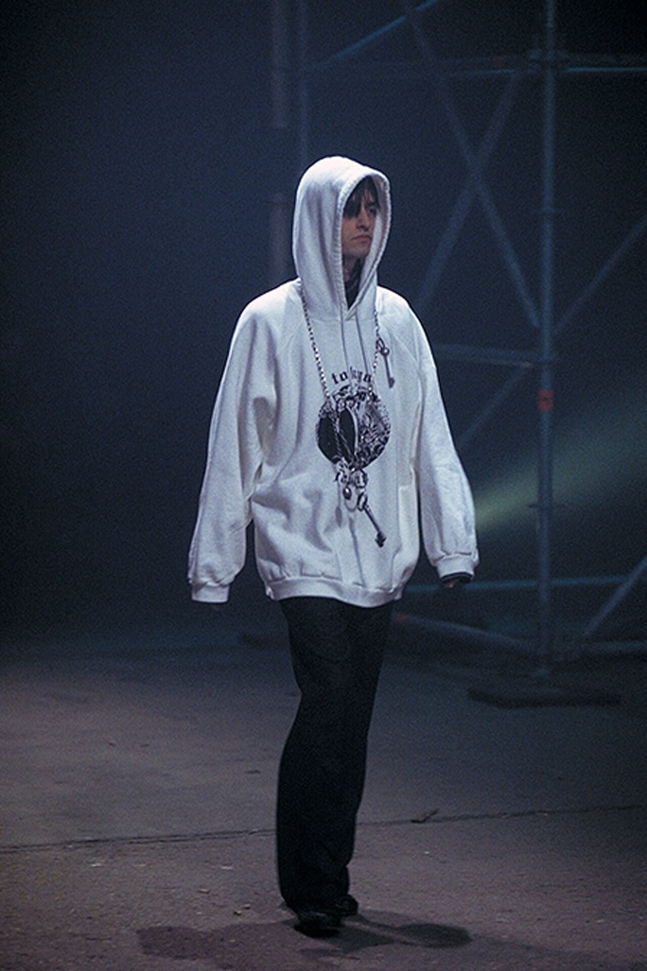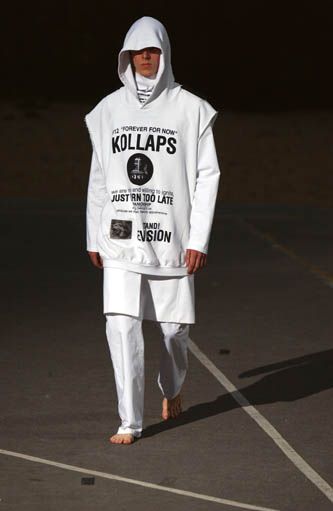仔細觀看RAF_SIMONS_ARCHIVE收藏的照片,意外看見吳赫身穿著RAF SIMONS SS2002 系列春夏系列“WOE UNTO THOSE WHO SPIT UNTO THE FEAR GENERATION; THE WIND WILL BLOW IT BACK”的有趣照片。這幅照片背後埋藏著什麼故事呢?提到90年代的RAF SIMONS,想必大家都會記起他的前衛與創新。2002春季RAF SIMONS把恐怖主義徹底融合個人創作之中,而系列最為人印象深刻的是那高舉著火把造型。A$AP ROCKY也曾經向這幕經典致敬,蒙臉只露雙眼。