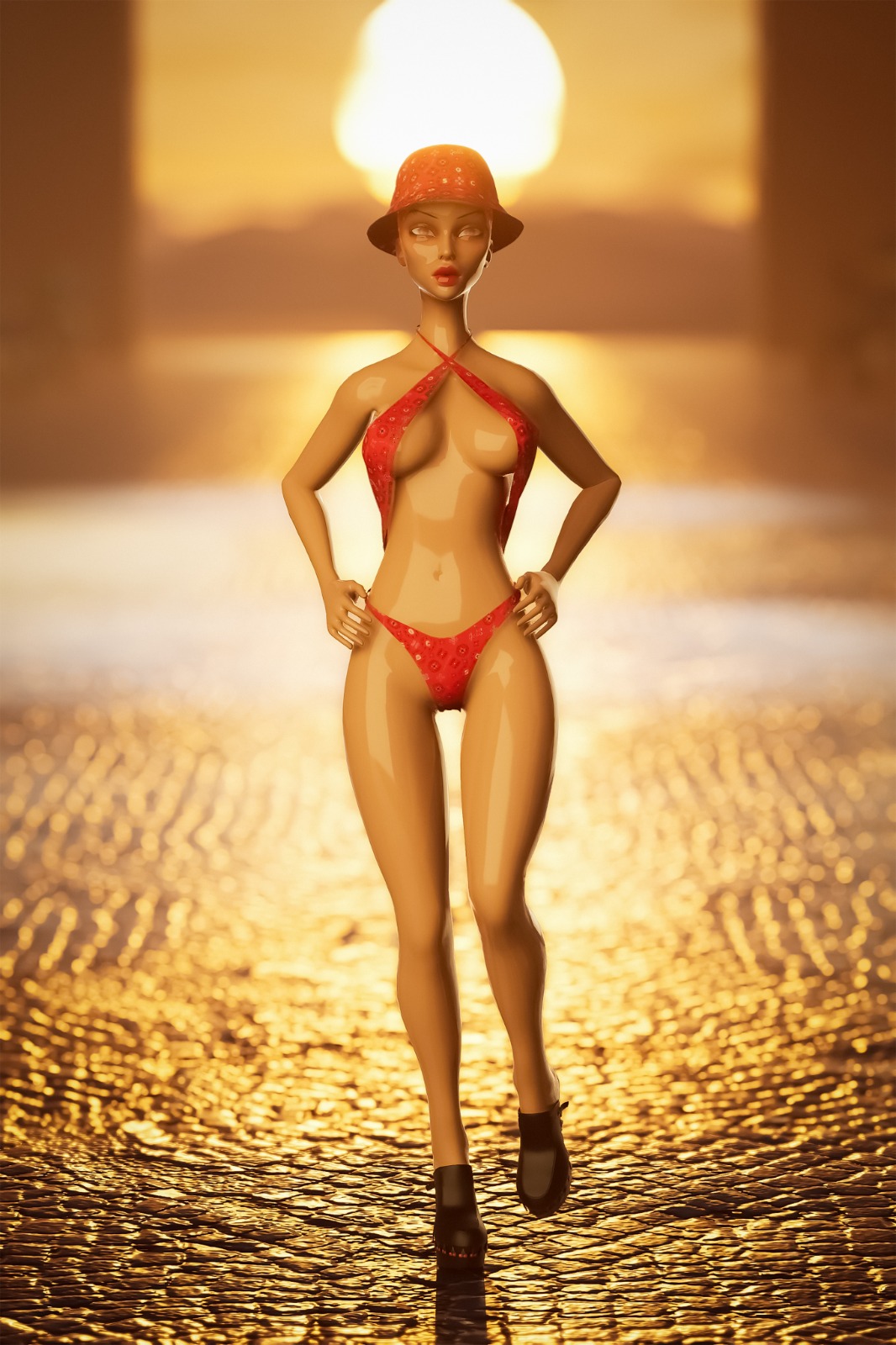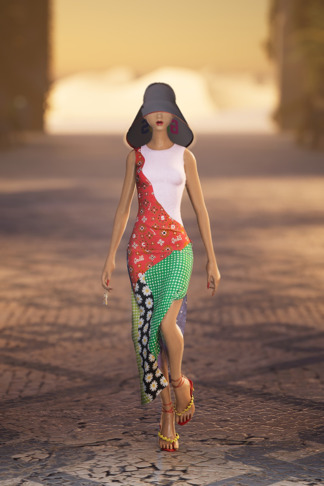 那麼數碼虛擬的場景是由誰設計而成?答案是創意技術公司EMBLEMATIC GROUP。一個個光怪陸離的虛擬模特兒慢慢走到鏡頭面前,導演JERON BRAXTON 利用耀眼的霓虹色搭配著未來感的虛擬海灘,觀眾猶如置身於一個異空間。