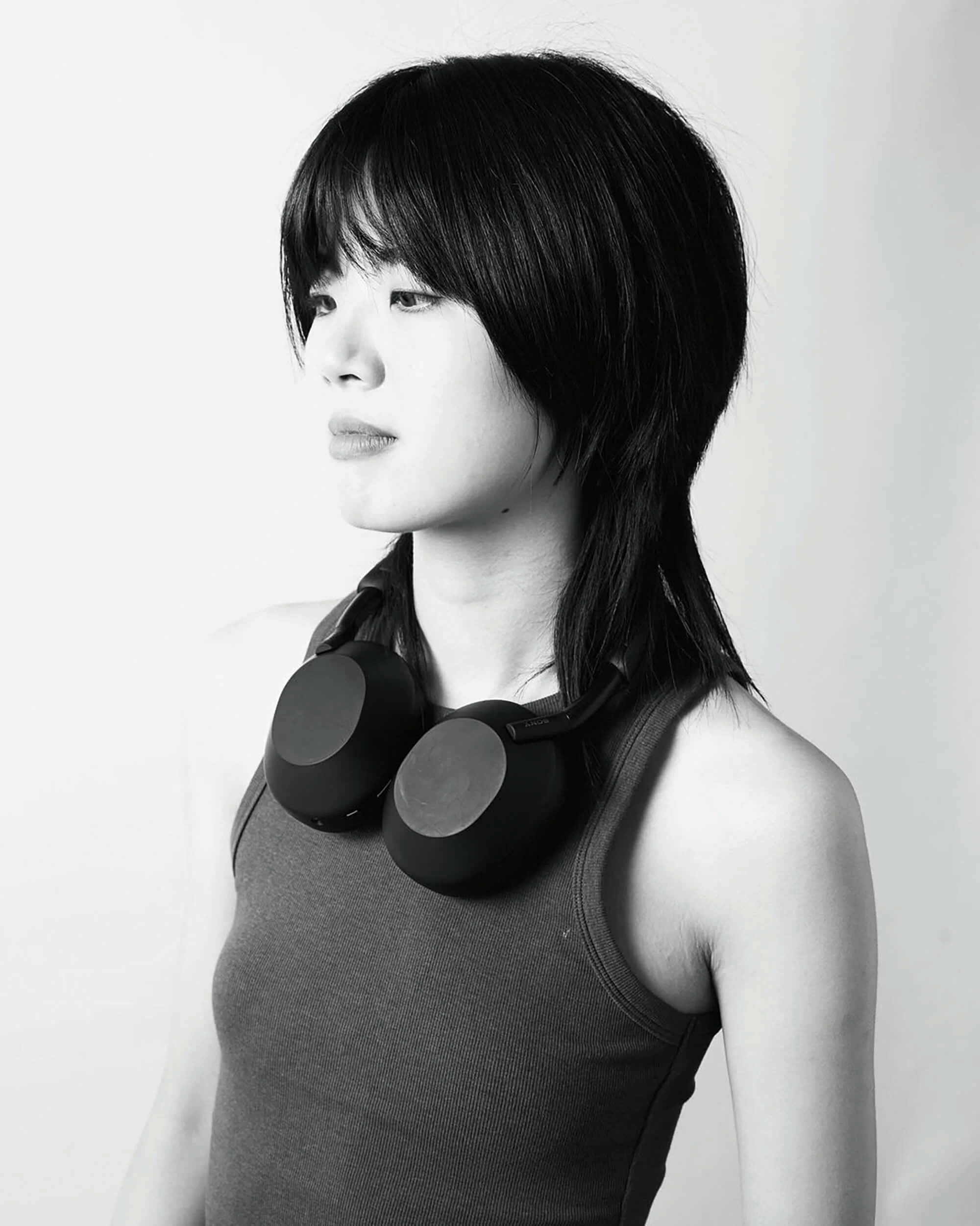 「當我們什麼也聽不到時,我們聽到的會是什麼?」我將寂靜視為一種獨特的「背景音樂」,不僅是噪音之間的空隙。假如你一個人待在無人的房間中,你閉上眼睛仔細聆聽,你可能會聽到一種低頻聲音,聲音的粒子仿似在房間裡跳着舞。 我希望透過沉寂和孤獨的節奏來表達我的情感和內在狀態,〈I HEAR SILENCE〉因此而誕生。