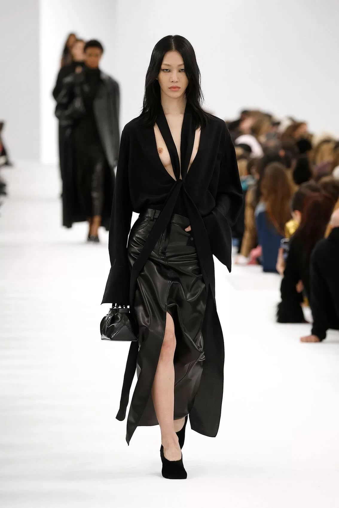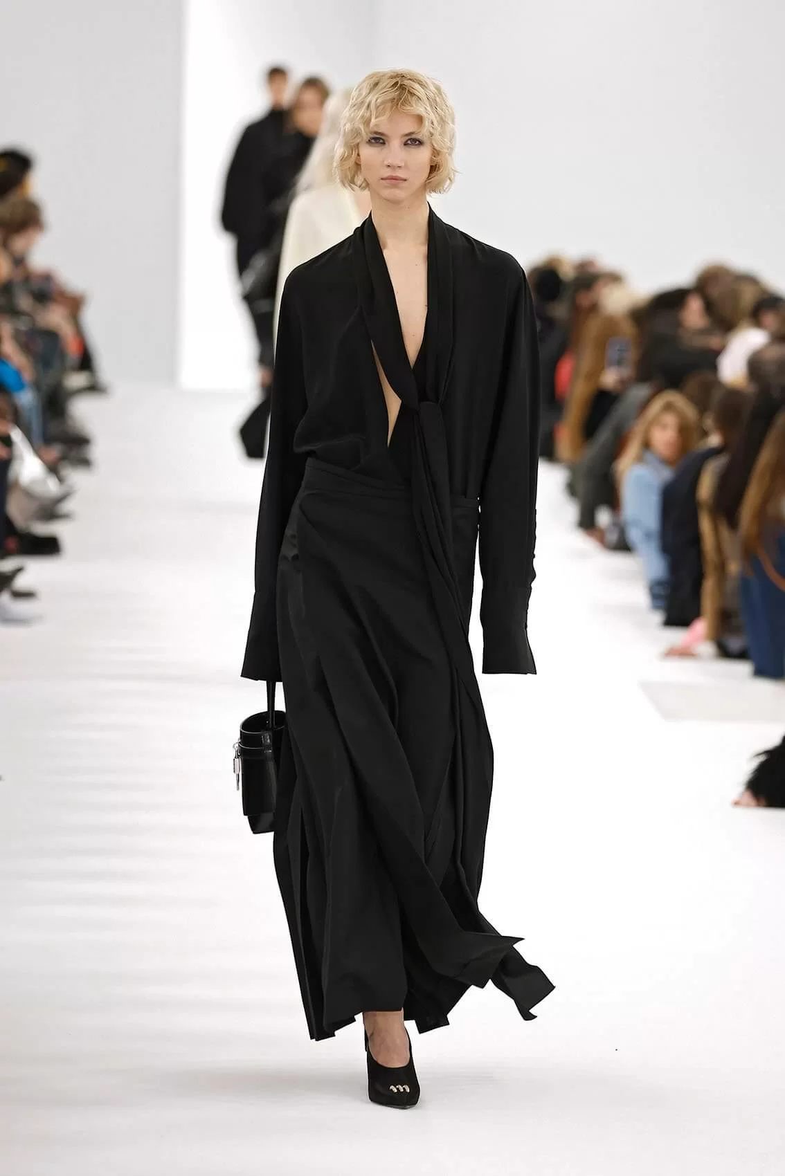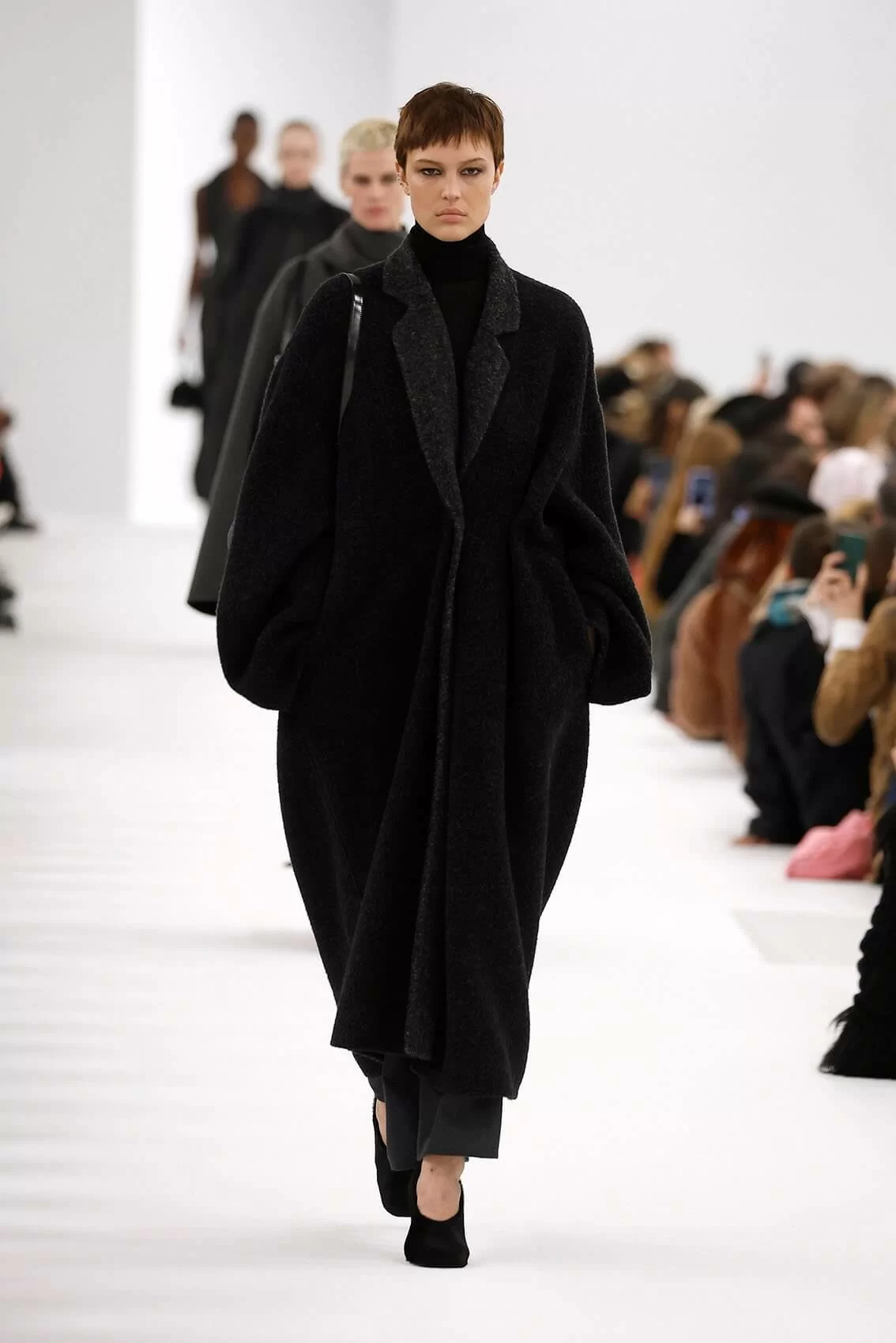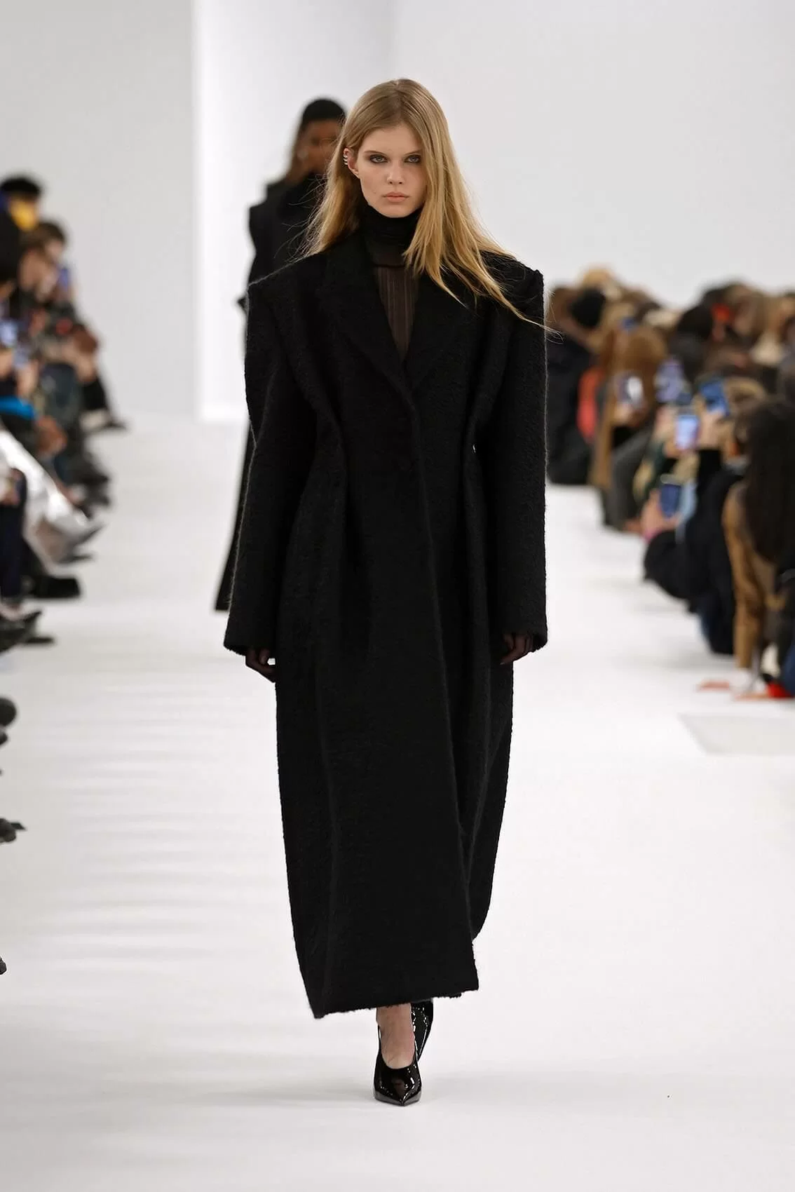 系列以一系列的黑色外套打開序幕,不同的變奏版本定下今次的優雅基調。西裝的比例被放大,線條 俐落的肩膊配上微微修腰的設計,毫不束縛。由高級訂造服工坊主理的黑色大衣以緞料、斜紋布、茄士咩或馬海毛匠心打造, 並在背幅添上倒轉的褶襇或以衣鈕點綴腰部。採用同一剪裁的西裝外套僅以透薄的物料支撐,透現連身迷你裙的誘人魅力。