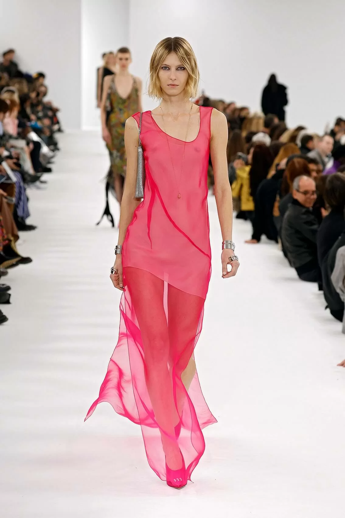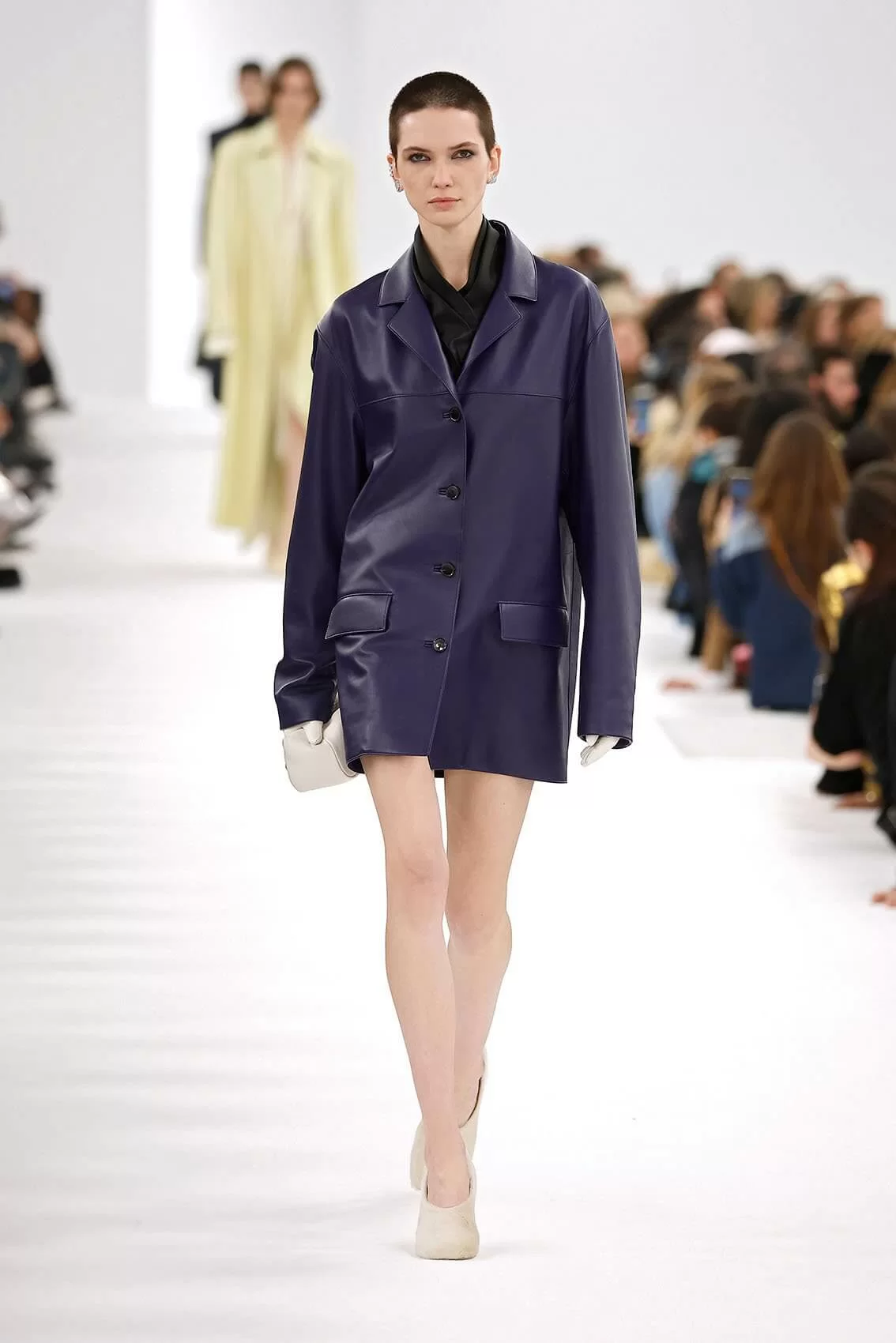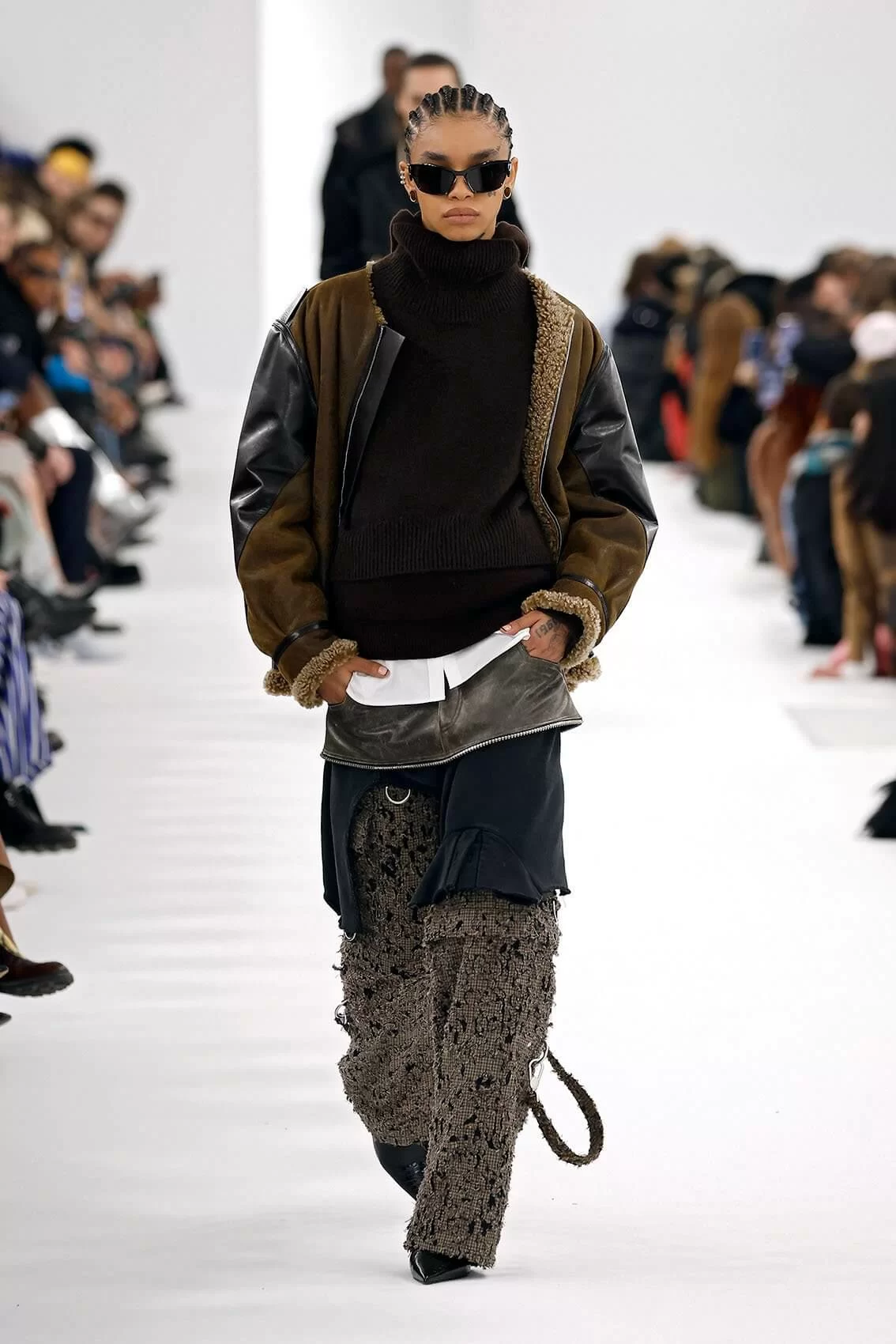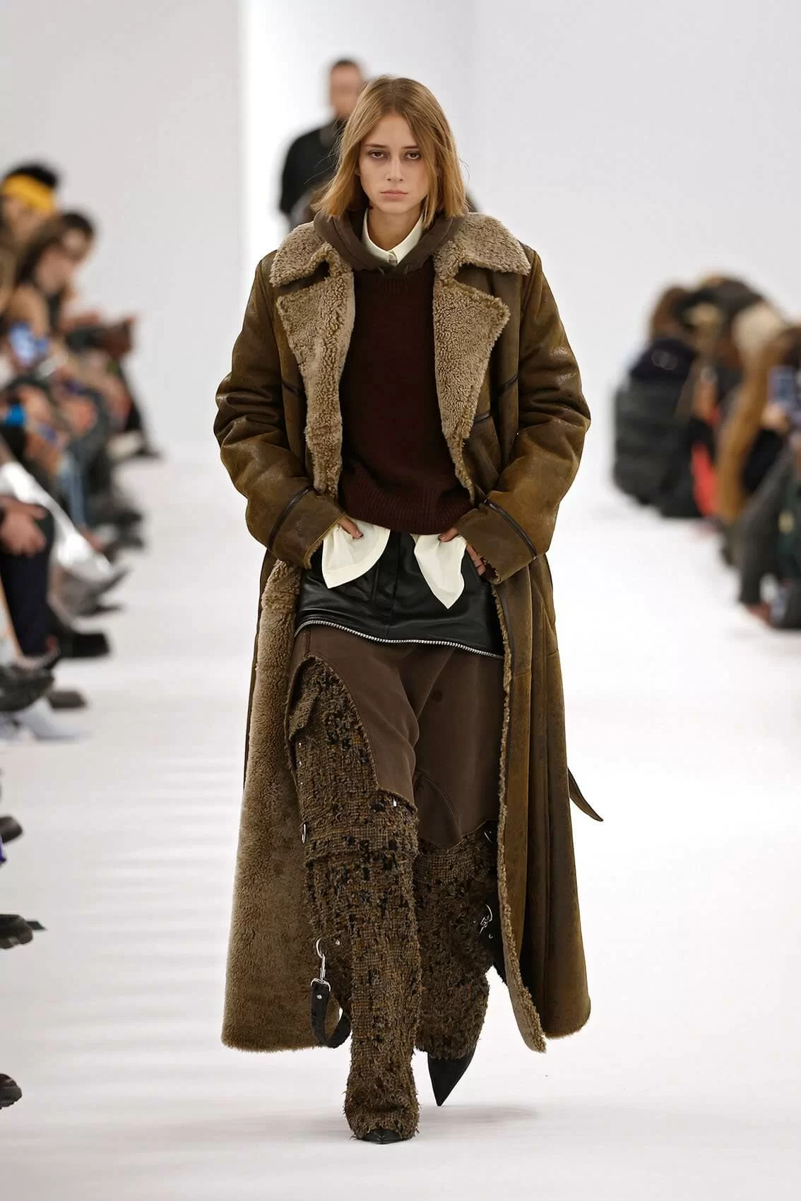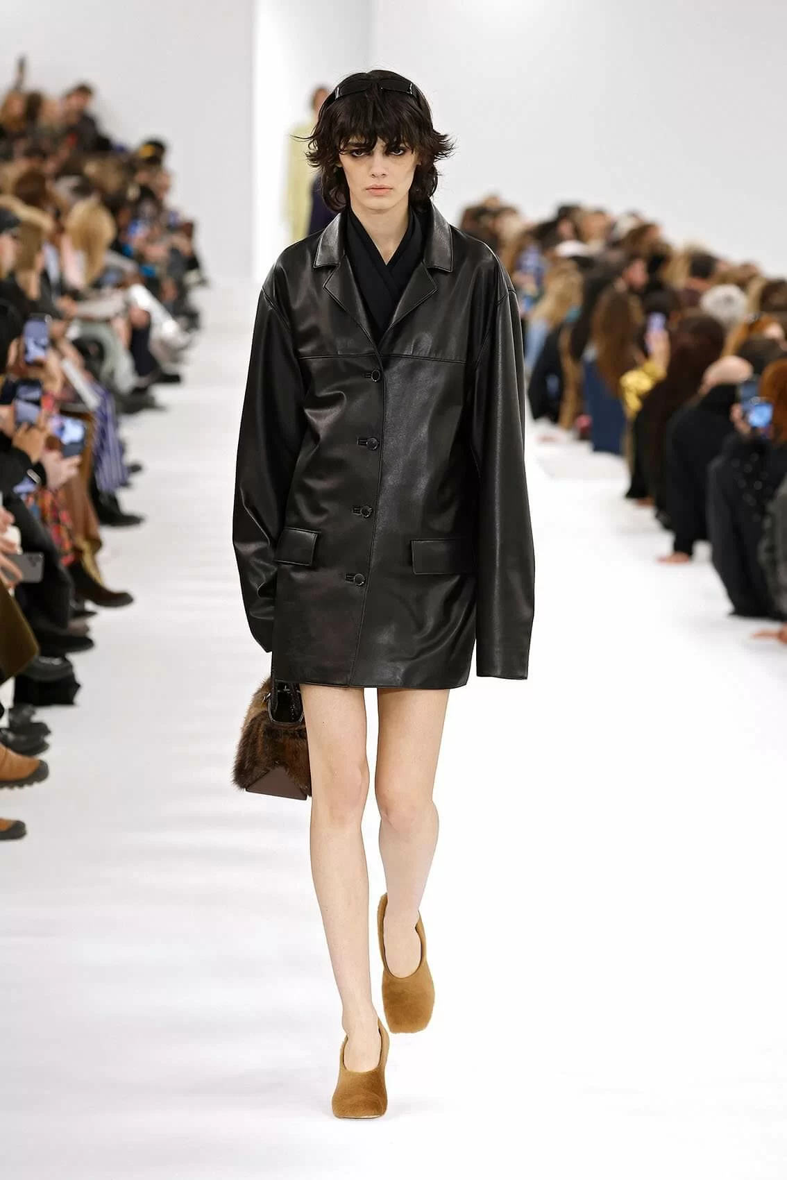 法式時尚與美式型格之間繼續展開對話,並為運動服和工作服 增添優雅氣息。傳統衛衣和牛仔服飾的鬆身剪裁優雅昇華,帶來結構垂墜的雙面茄士咩大衣和外套、採用羊毛皮襯裡的挺身外 套、飄逸的精細羊毛喇叭褲、舒適的茄士咩針織衫和彈性皮革娃娃裙。全身的優雅衛衣或牛仔服飾造型成為時尚的晚間造型, 開啟正裝的新潮流。牛仔大衣和外套加入西裝布料和破洞修補的細節,以營造粗花呢的效果。