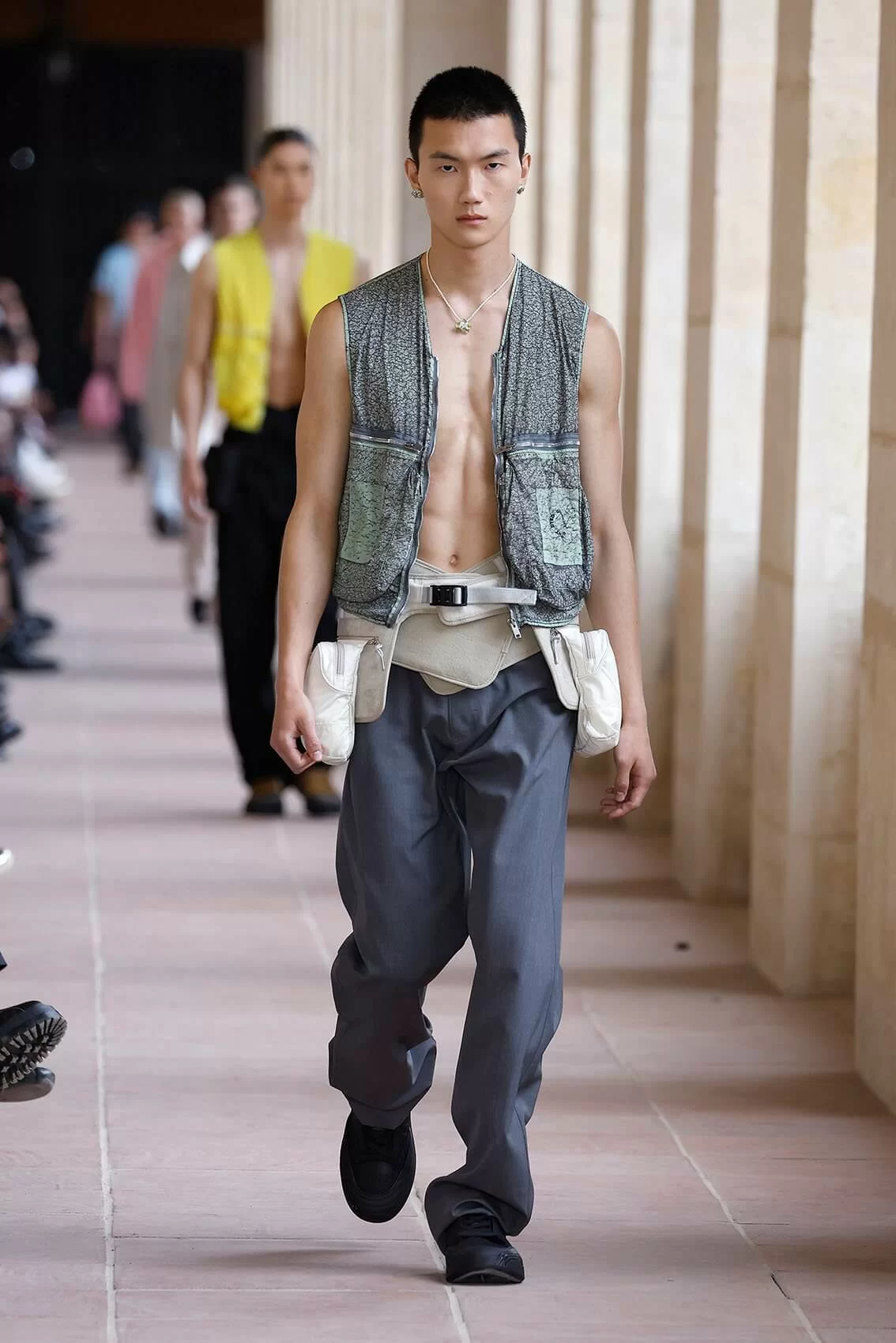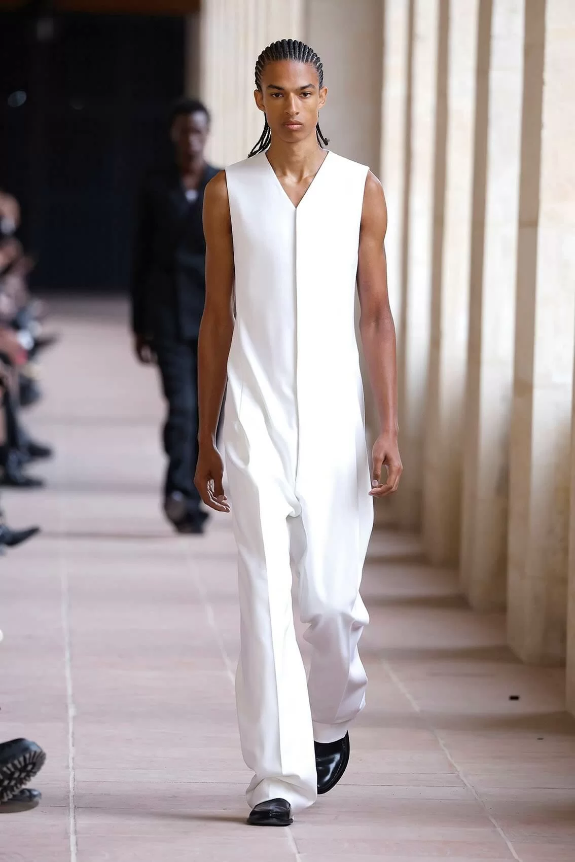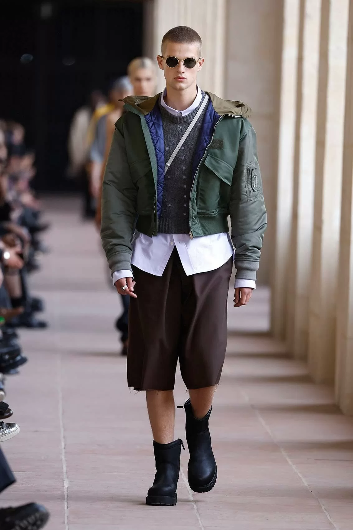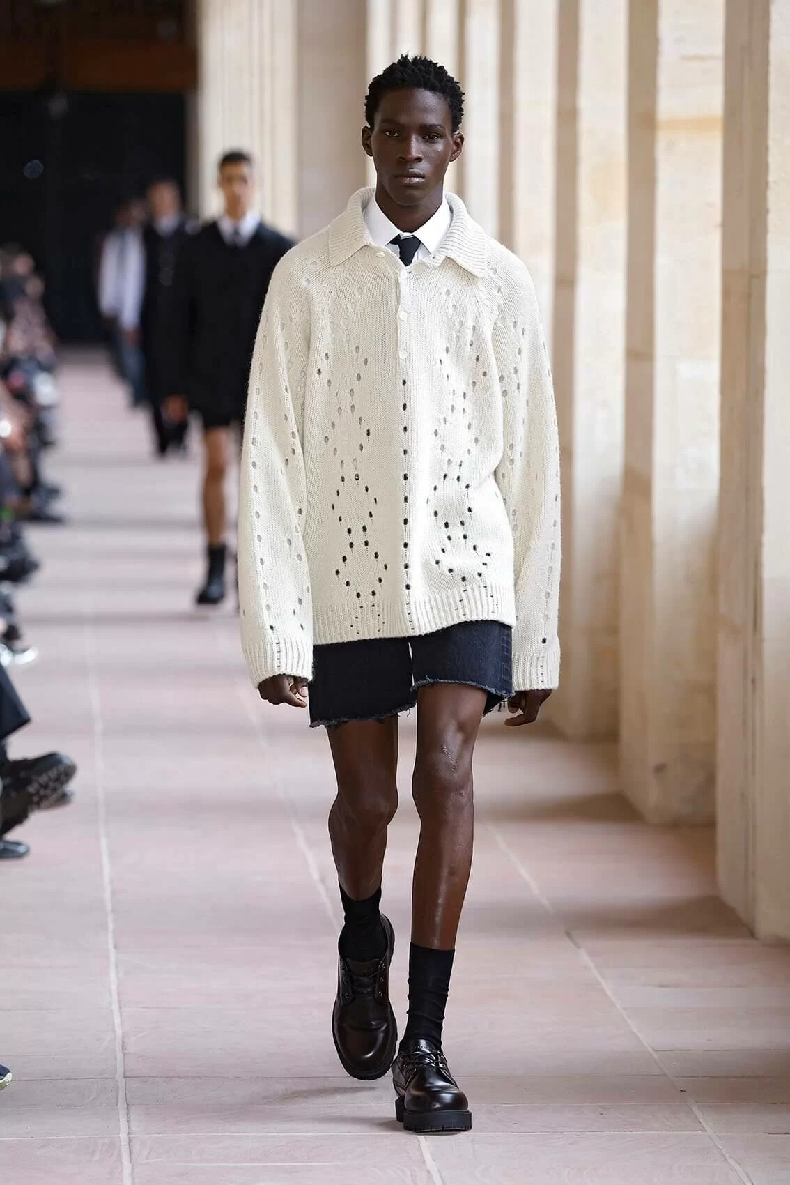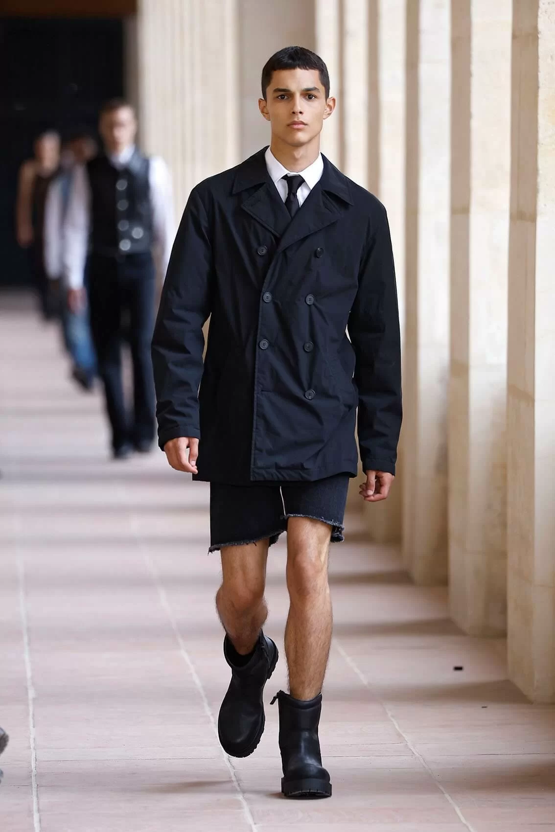 今次時裝展選址於巴黎榮軍院,這個軍事博物館的走廊成為了時尚的天橋,恰好代表了設計理念上的男性身份轉變,和對當代男人氣質的獨特詮釋。而創意總監亦繼續帶來一貫他的強項,把技能風格和實用主義完美融入高級時裝,和具有歷史意義的地點互相映襯。系列受到校服啟發,因為校服讓年輕人首次認識優雅風格,而且同時象徵民主和約束,也為青少年提供改造的空間,讓他們根據功能和個性隨心改造傳統設計。男童校服配搭功能外套,成就全新的正裝風格。