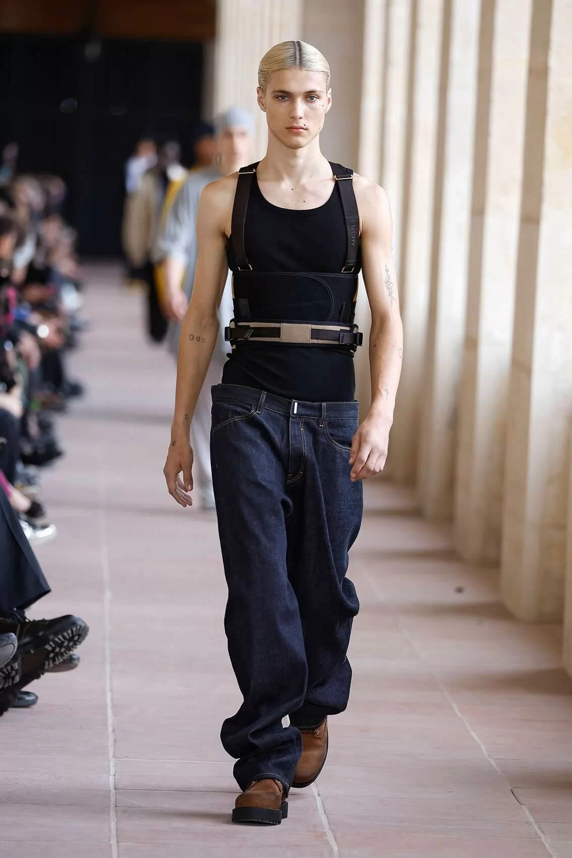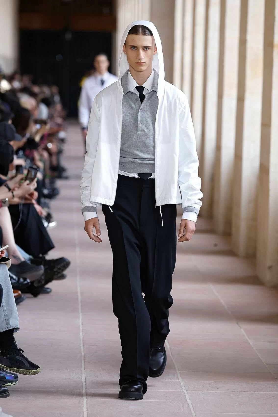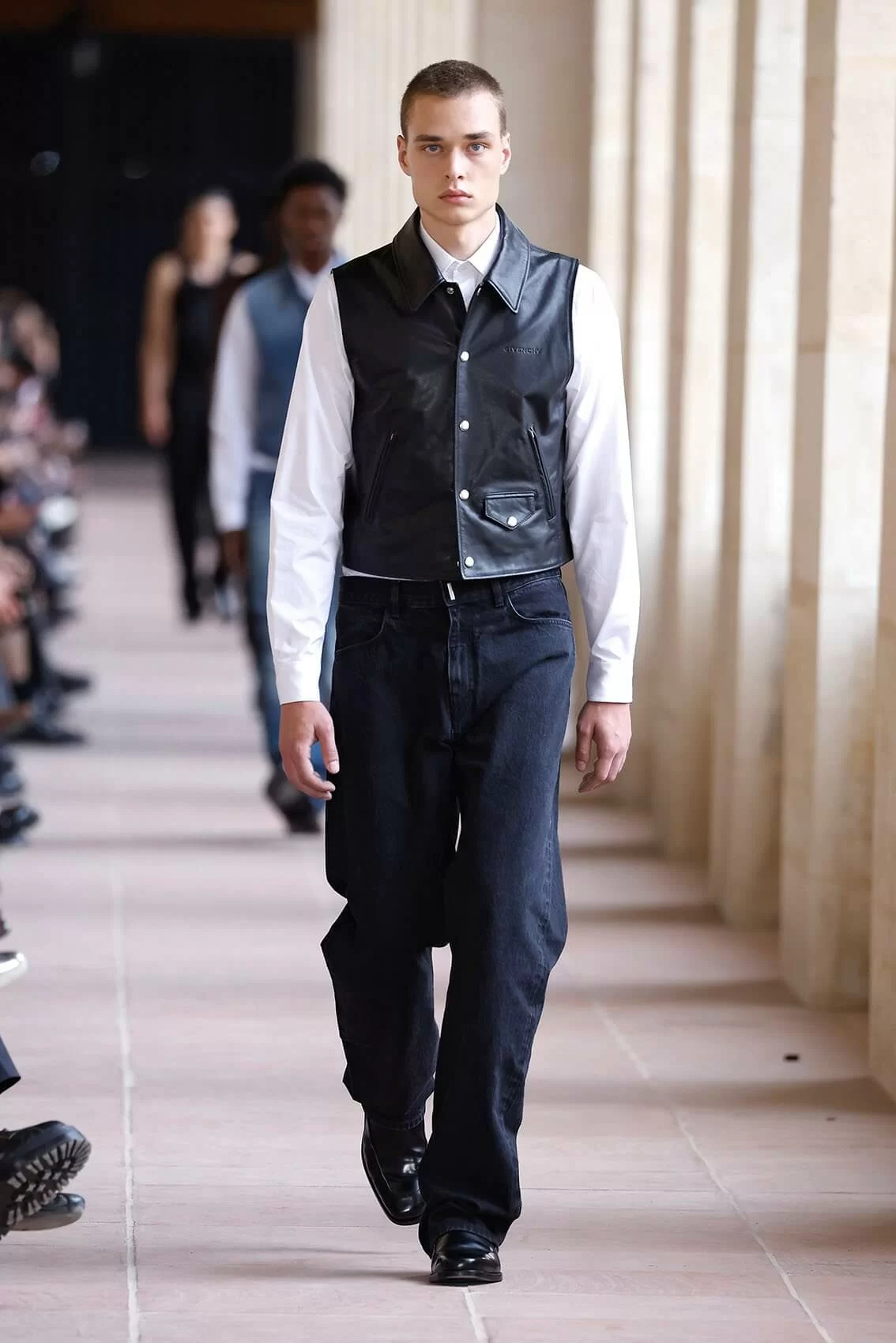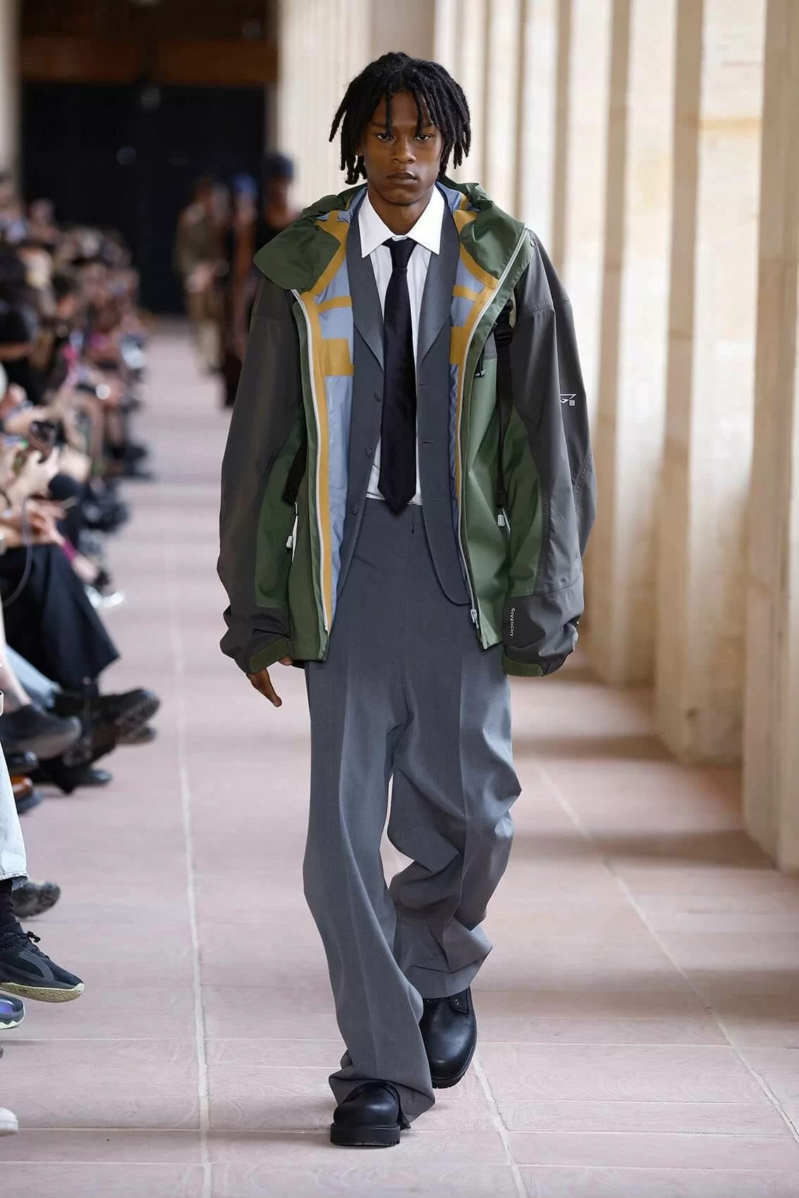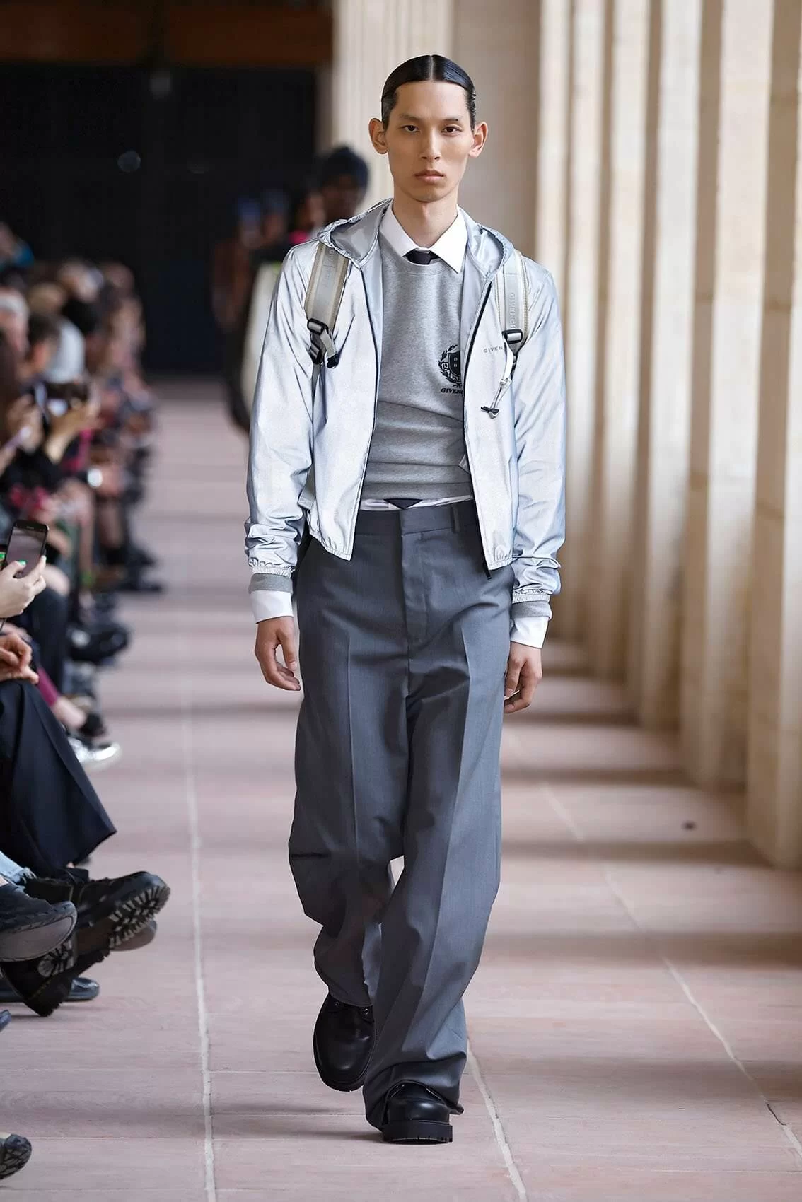 BRITNEY SPEARS 在 2001 年推出職業生涯裏其中一首名曲《I’M NOT A GIRL, NOT YET A WOMAN》,講述了青少年夾在成年和兒童之間的心境,引起天下人共鳴。現今 GIVENCHY 創意總監 MATTHEW M. WILLIAMS 則在品牌 2024 男裝系列中為男士做到同樣的效果,從稚氣未脫的地下少年去到成熟沉穩的社會棟樑,48 套造型彷彿準備了男人一生這麼多場合所需要的所有服裝。