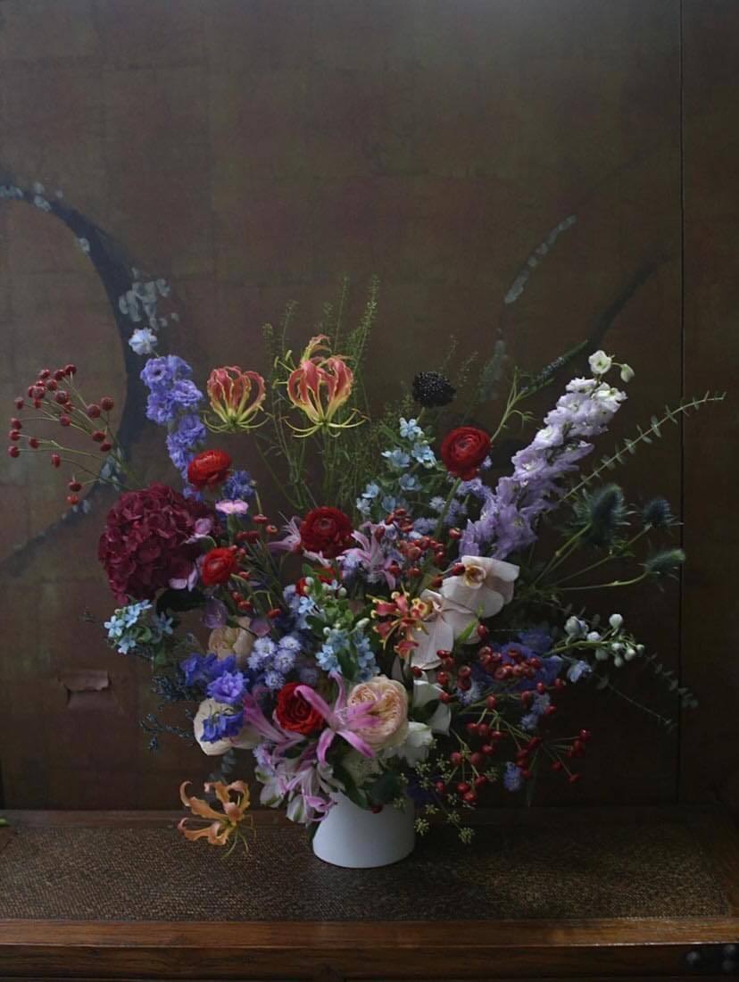 我會想與 GUCCI 的 ALESSANDRO MICHELE 合作。雖然我們一直也有與品牌合作,但如果有一天能面對面的跟他去創作 CAMPAIGN 一定會十分有趣!最近很流行一種染色的蘭花,能把整棟的白色蘭花也染成藍色。我覺得跟他把充滿歷史氛圍的品牌,再昇華至當今潮流的指標一樣,同樣都是脫變的SYMBOLS。另外,我想這一些 EXOTIC 的花材,他也一定會很喜歡。